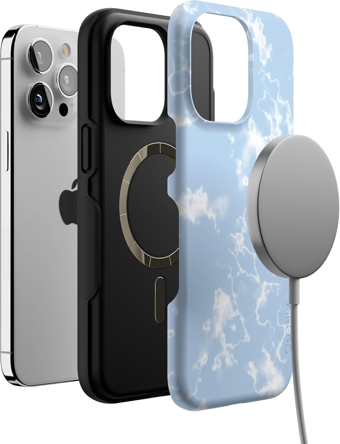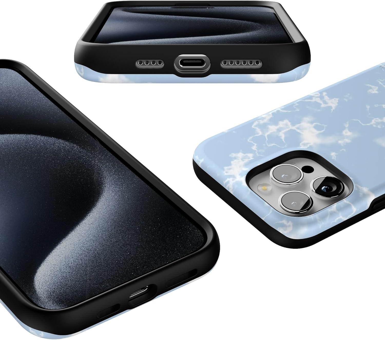 Casely iPhone 15 Pro Max Case | All The Fun Things | Fun on Weekdays | Bold Protective Design | Compatible with MagSafe(Light Blue Skies | Marble Clouds)