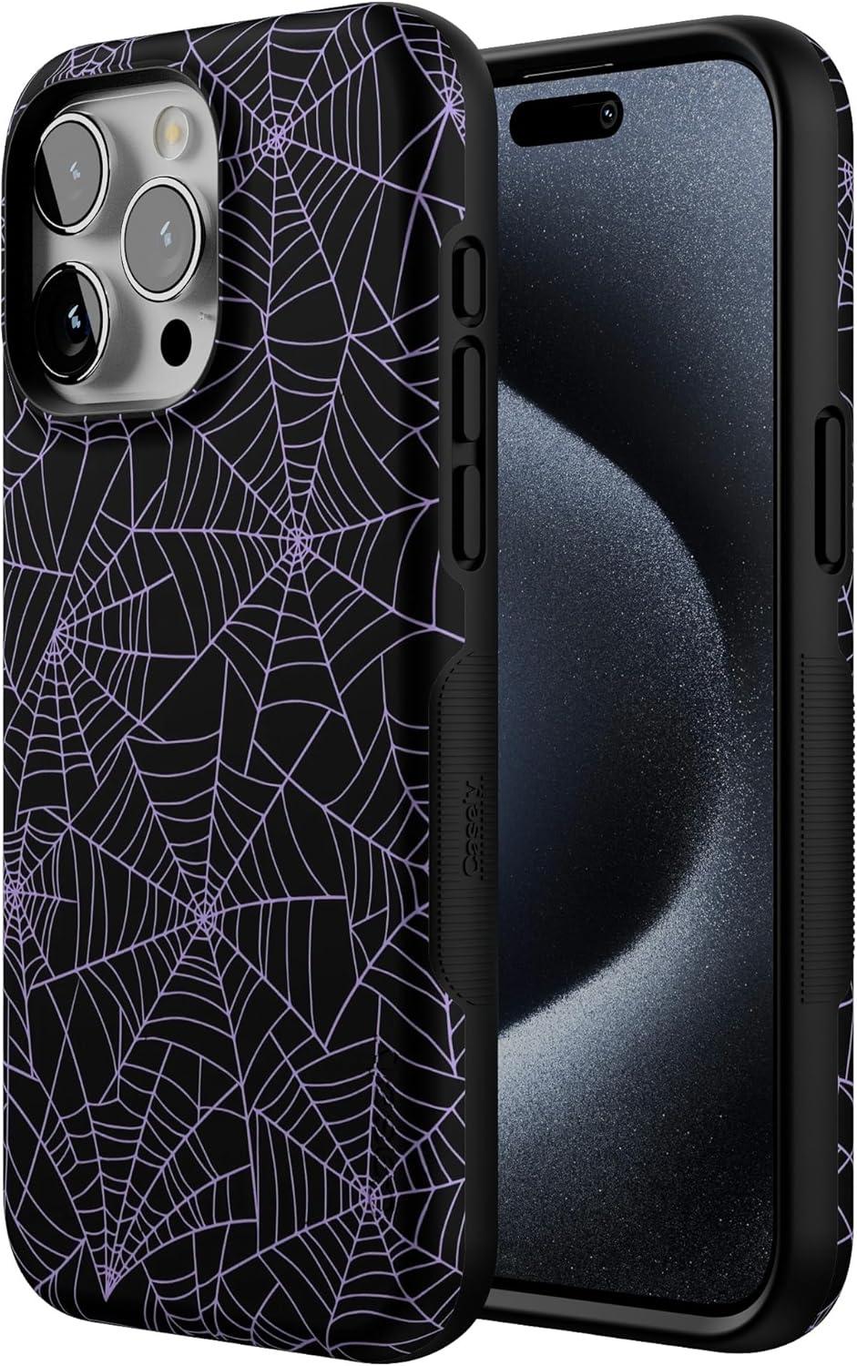 Casely iPhone 15 Pro Max Case | All The Fun Things | Fun on Weekdays | Bold Protective Design | Compatible with MagSafe(Midnight Web | Spider Web)