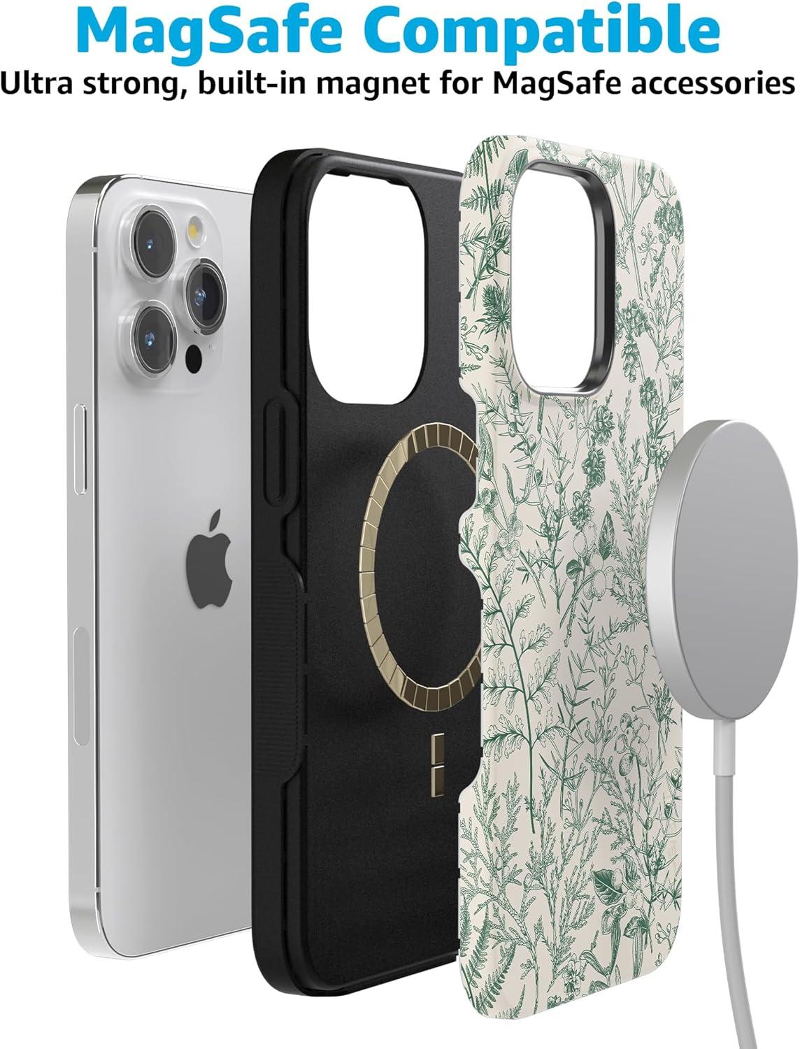 Casely iPhone 15 Pro Max Case | All The Fun Things | Fun on Weekdays | Bold Protective Design | Compatible with MagSafe(Sage Garden | Green Floral)