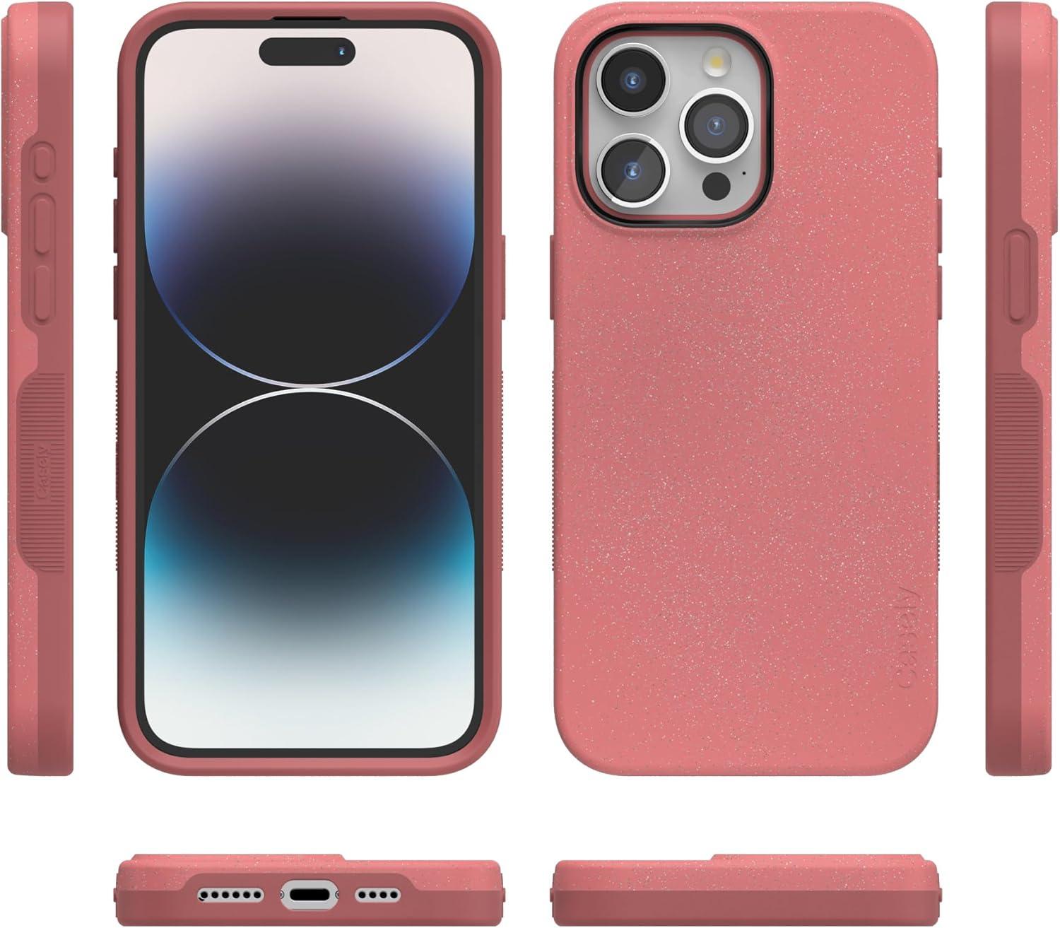 Casely iPhone 15 Pro Max Case | All The Fun Things | Fun on Weekdays | Bold Protective Design | Compatible with MagSafe(Starfish Wishes | Coral Pink Shimmer Glitter)