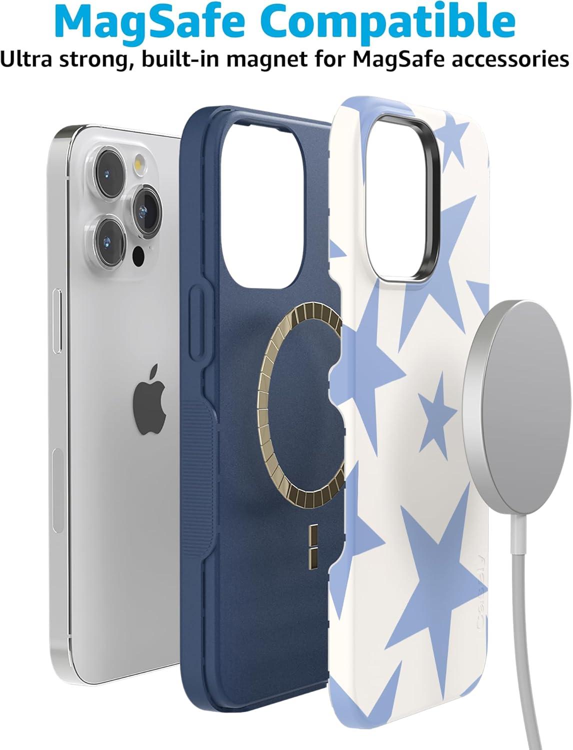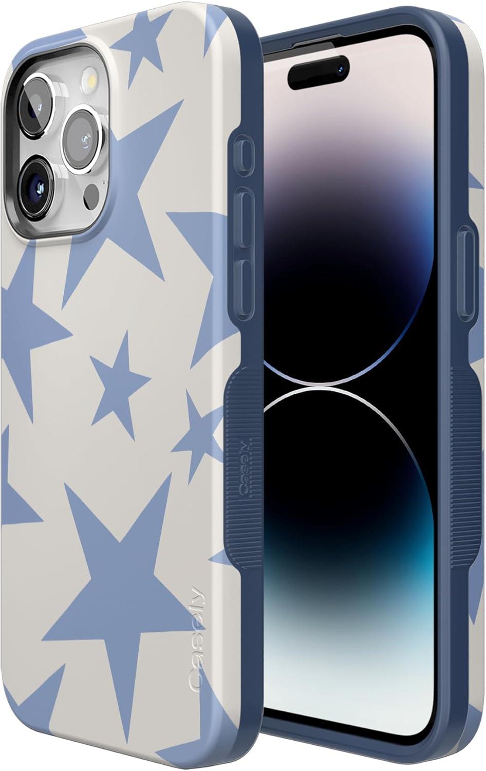 Casely iPhone 15 Pro Max Case | All The Fun Things | Fun on Weekdays | Bold Protective Design | Compatible with MagSafe(Stars Align | Blue & White Stars)
