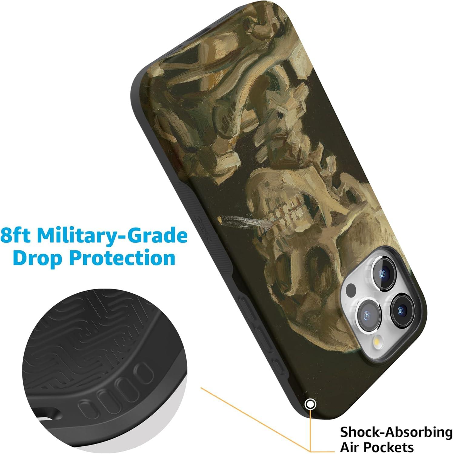 Casely iPhone 15 Pro Max Case | All The Fun Things | Fun on Weekdays | Bold Protective Design | Compatible with MagSafe(Van Gogh | Skull of a Skeleton with Burning Cig)