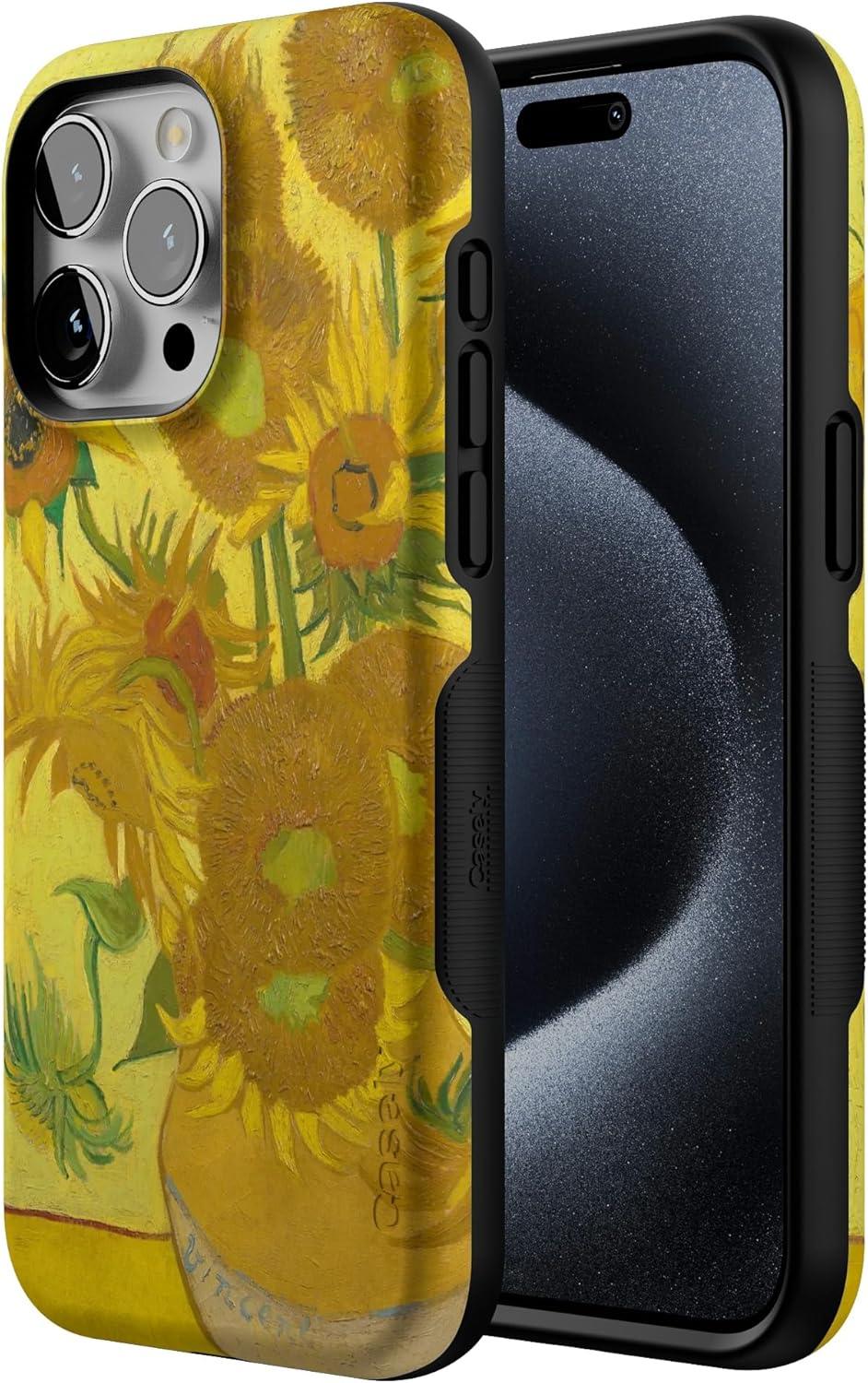 Casely iPhone 15 Pro Max Case | All The Fun Things | Fun on Weekdays | Bold Protective Design | Compatible with MagSafe(Van Gogh | Sunflowers Floral)