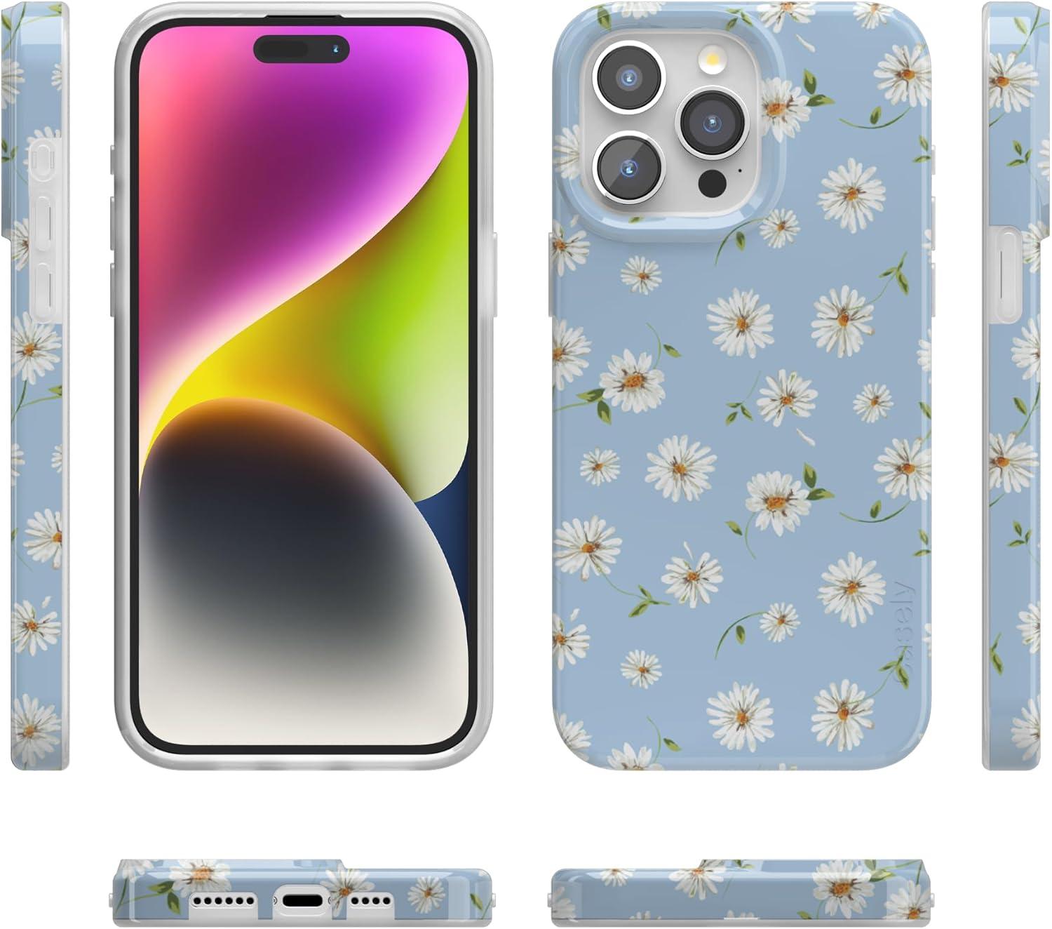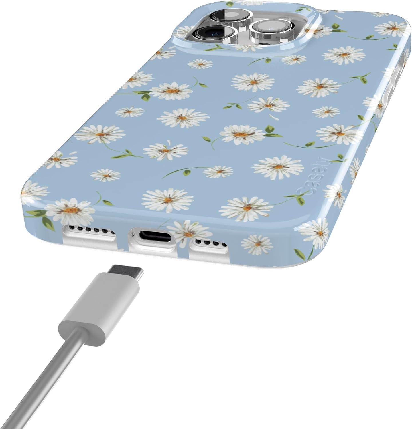 Casely iPhone 15 Pro Max Case | Butter Yellow Stripes | Sunday Best | Compatible with MagSafe | Classic Ultra Thin Design(Daisy Daydream | Baby Blue Floral)