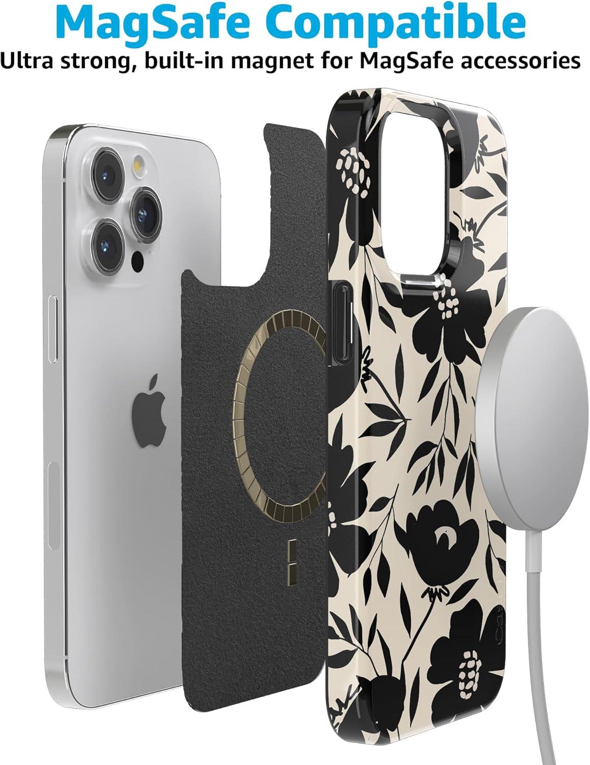 Casely iPhone 15 Pro Max Case | Butter Yellow Stripes | Sunday Best | Compatible with MagSafe | Classic Ultra Thin Design(Dark Fantasy | Contrast Floral)