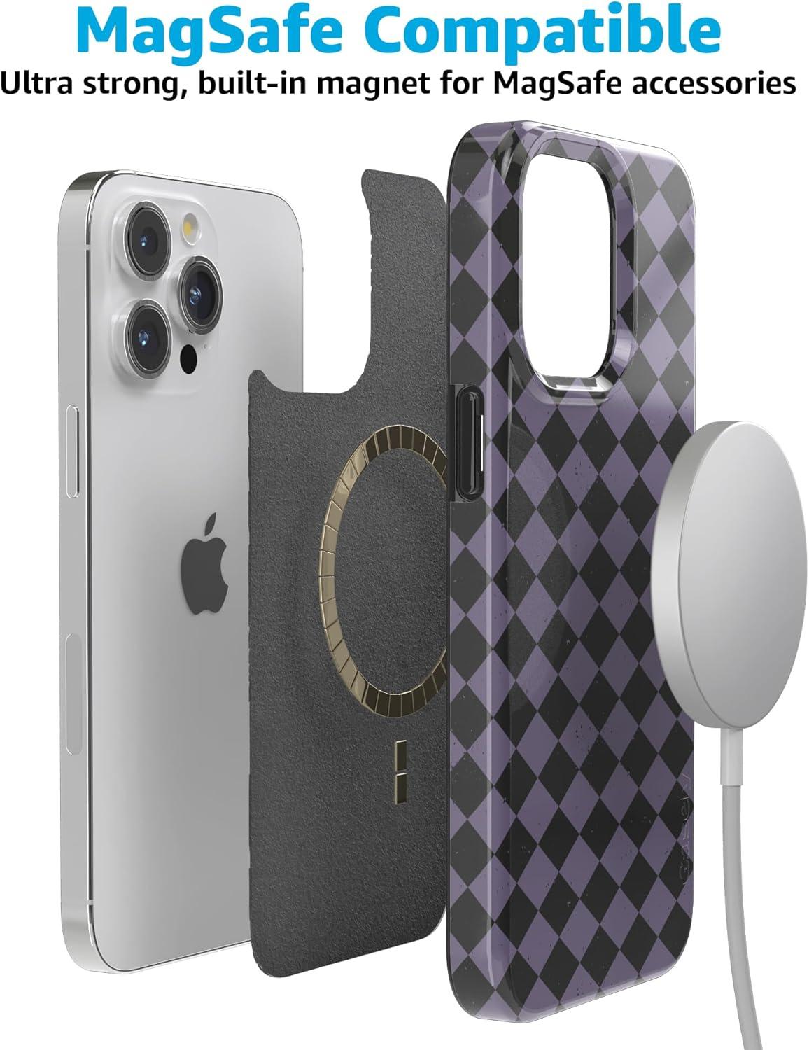 Casely iPhone 15 Pro Max Case | Butter Yellow Stripes | Sunday Best | Compatible with MagSafe | Classic Ultra Thin Design(Harlequin Midnight Diamond | Black and Purple)