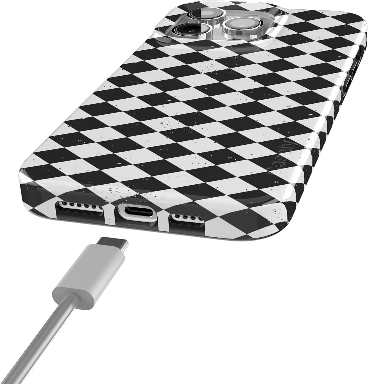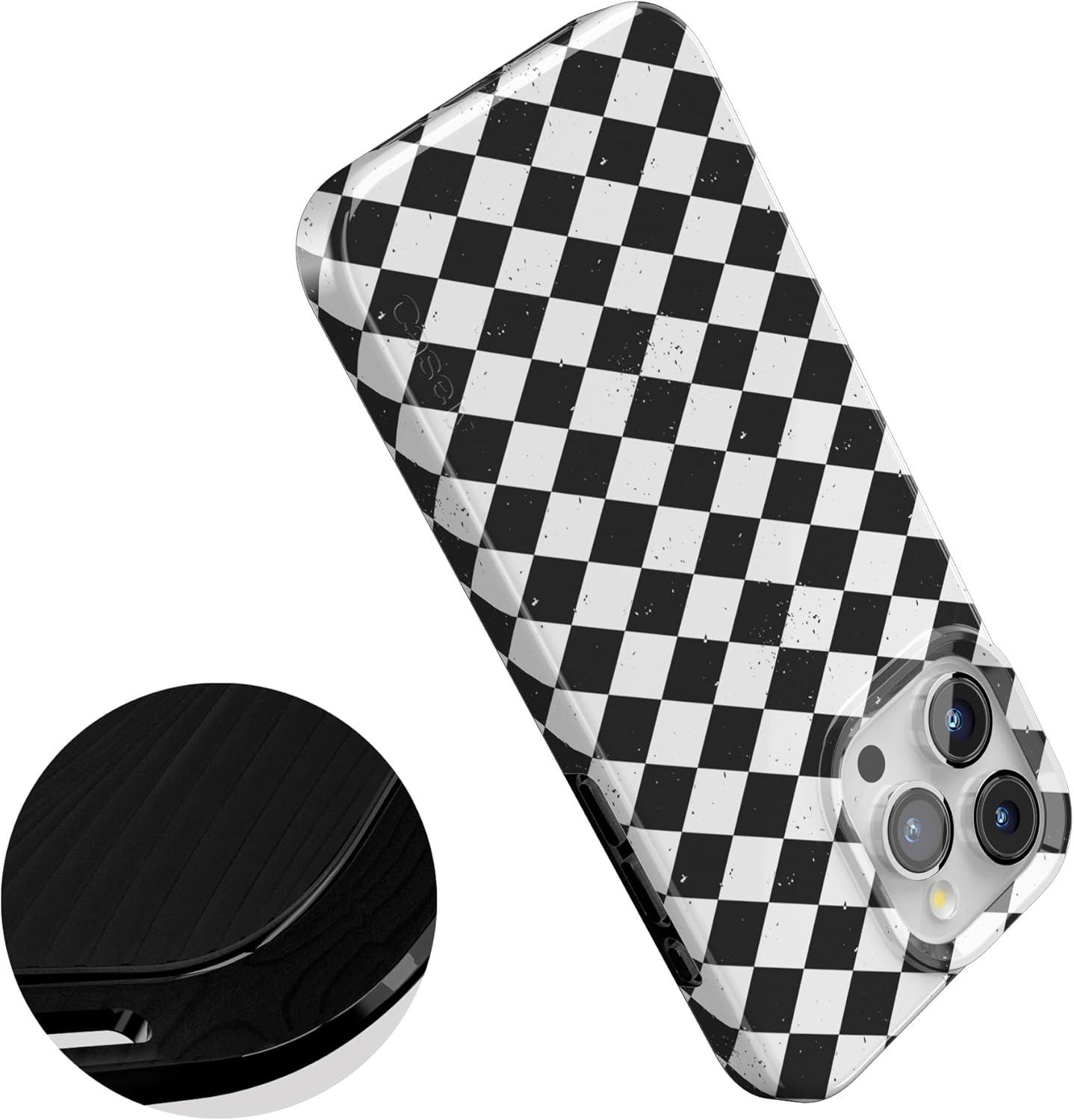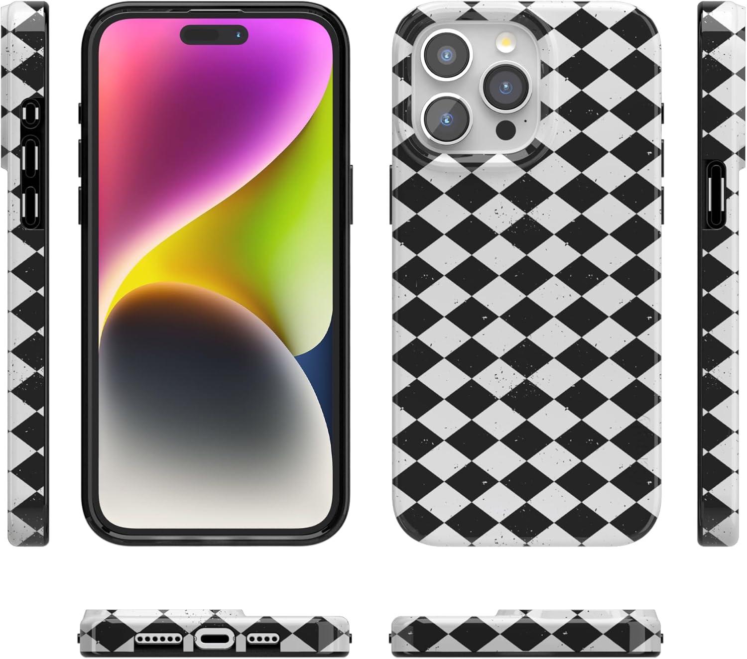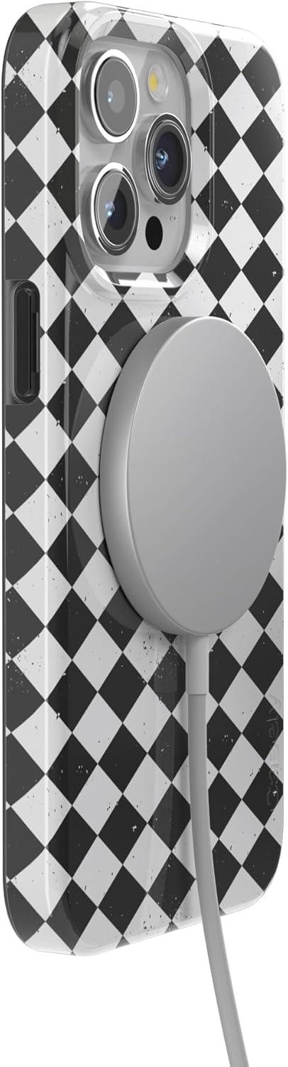 Casely iPhone 15 Pro Max Case | Butter Yellow Stripes | Sunday Best | Compatible with MagSafe | Classic Ultra Thin Design(Harlequin Salem Diamond | Black and White)