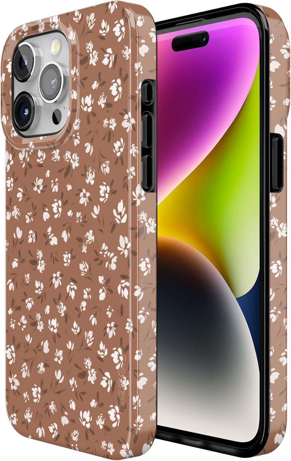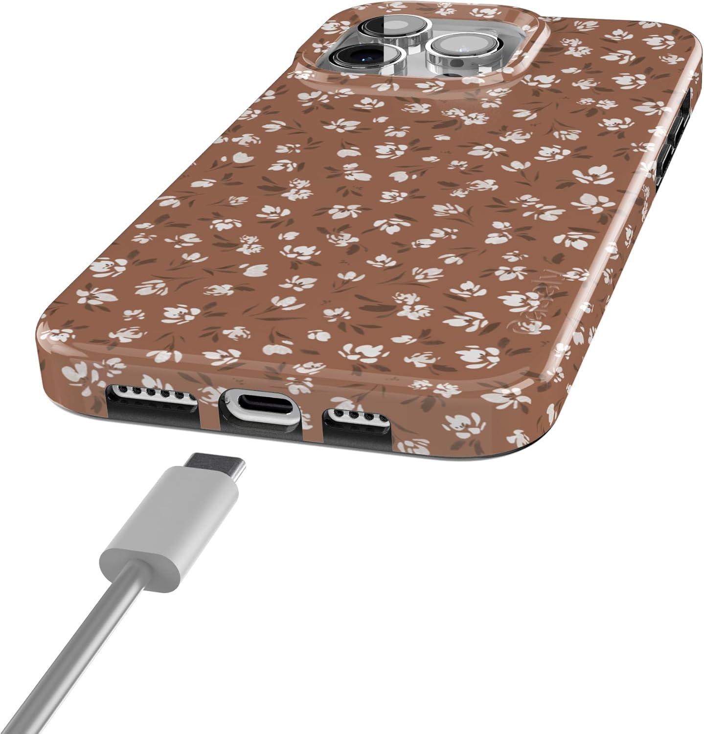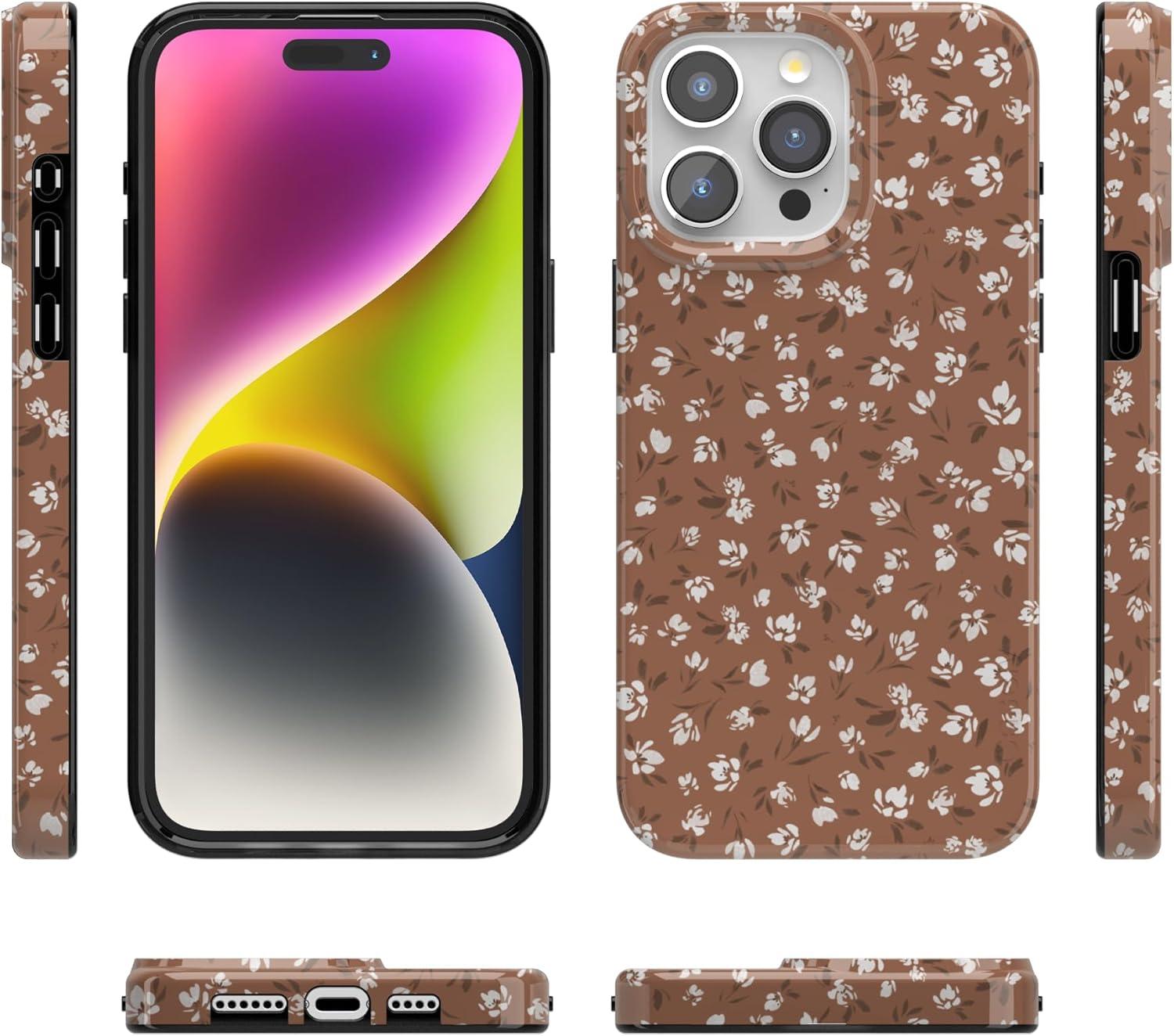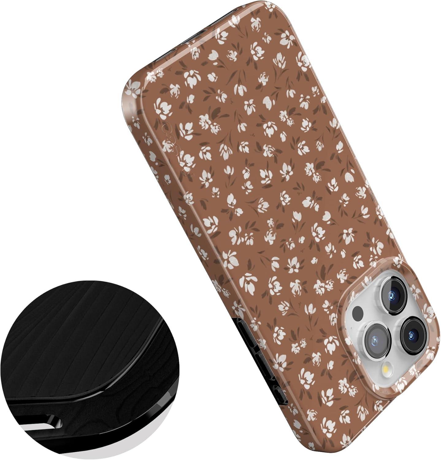 Casely iPhone 15 Pro Max Case | Butter Yellow Stripes | Sunday Best | Compatible with MagSafe | Classic Ultra Thin Design(Mocha Meadow | Tiny Flowers)