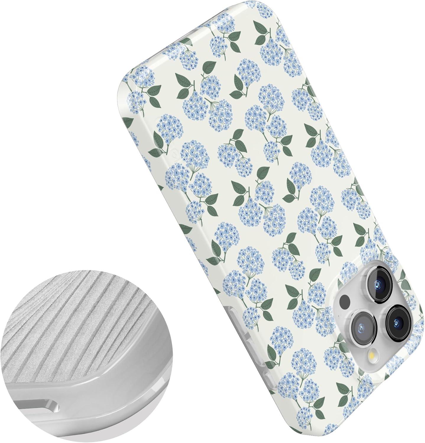 Casely iPhone 15 Pro Max Case | Butter Yellow Stripes | Sunday Best | Compatible with MagSafe | Classic Ultra Thin Design(Nantucket Cottage | Blue Hydrangea)