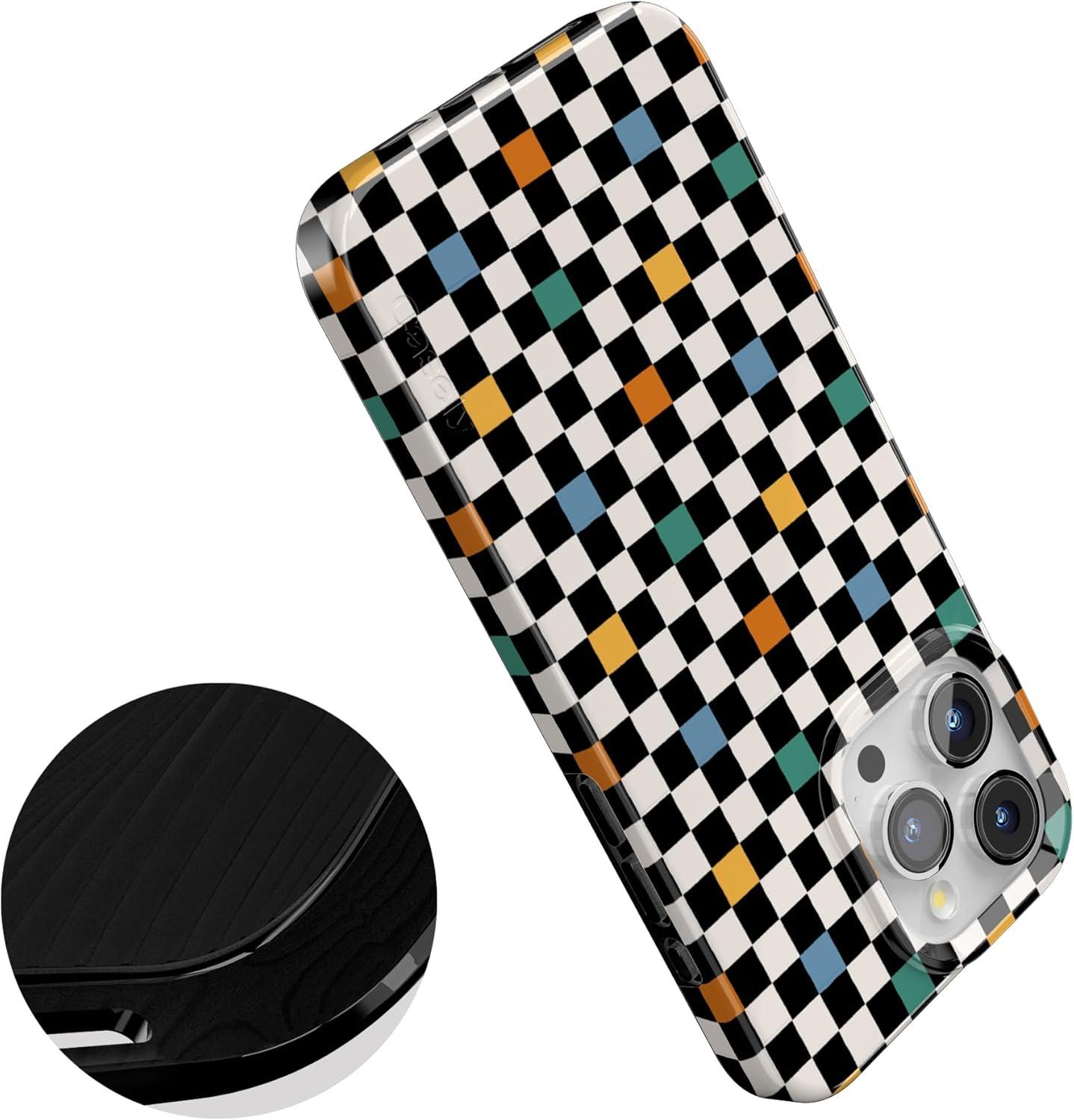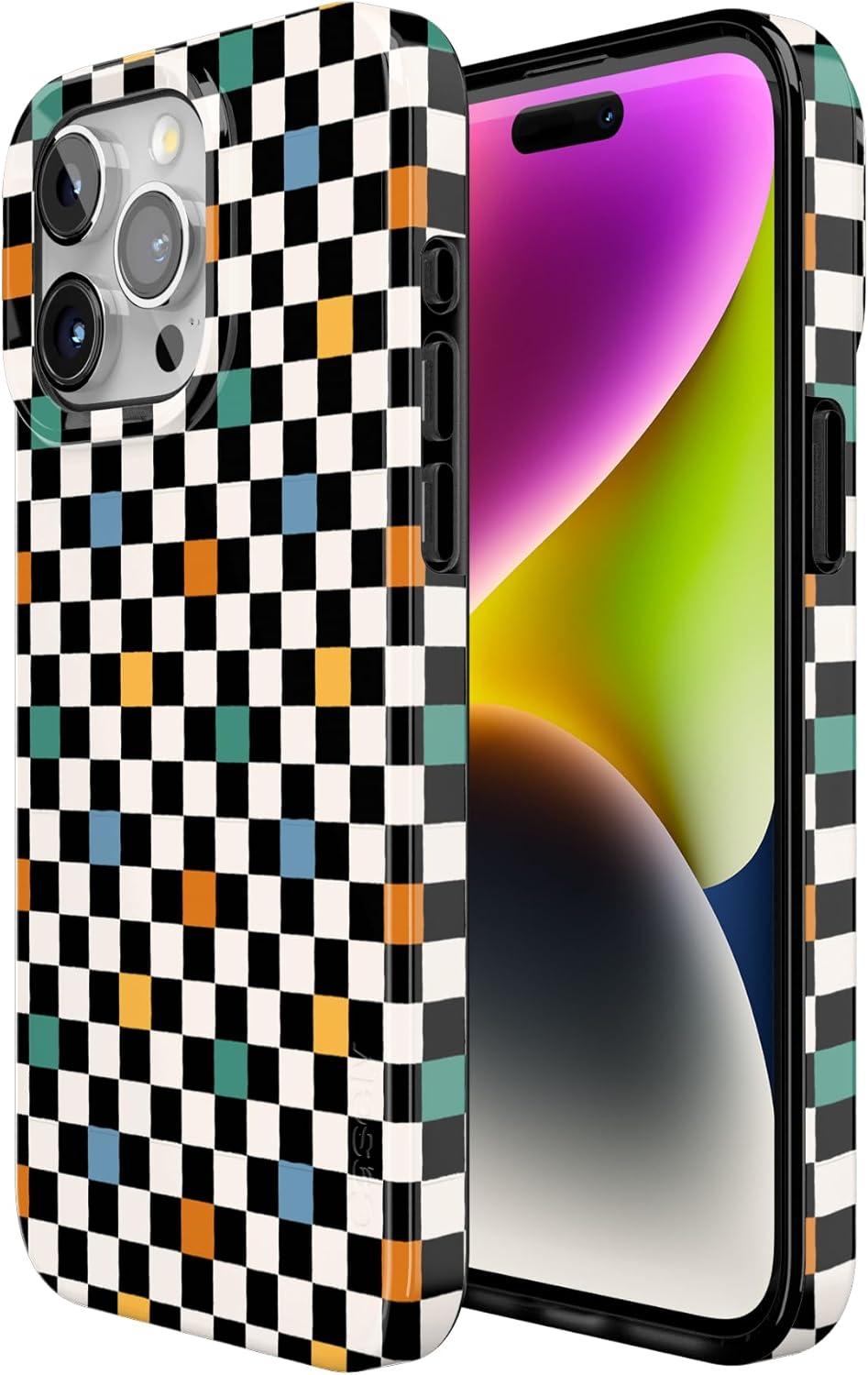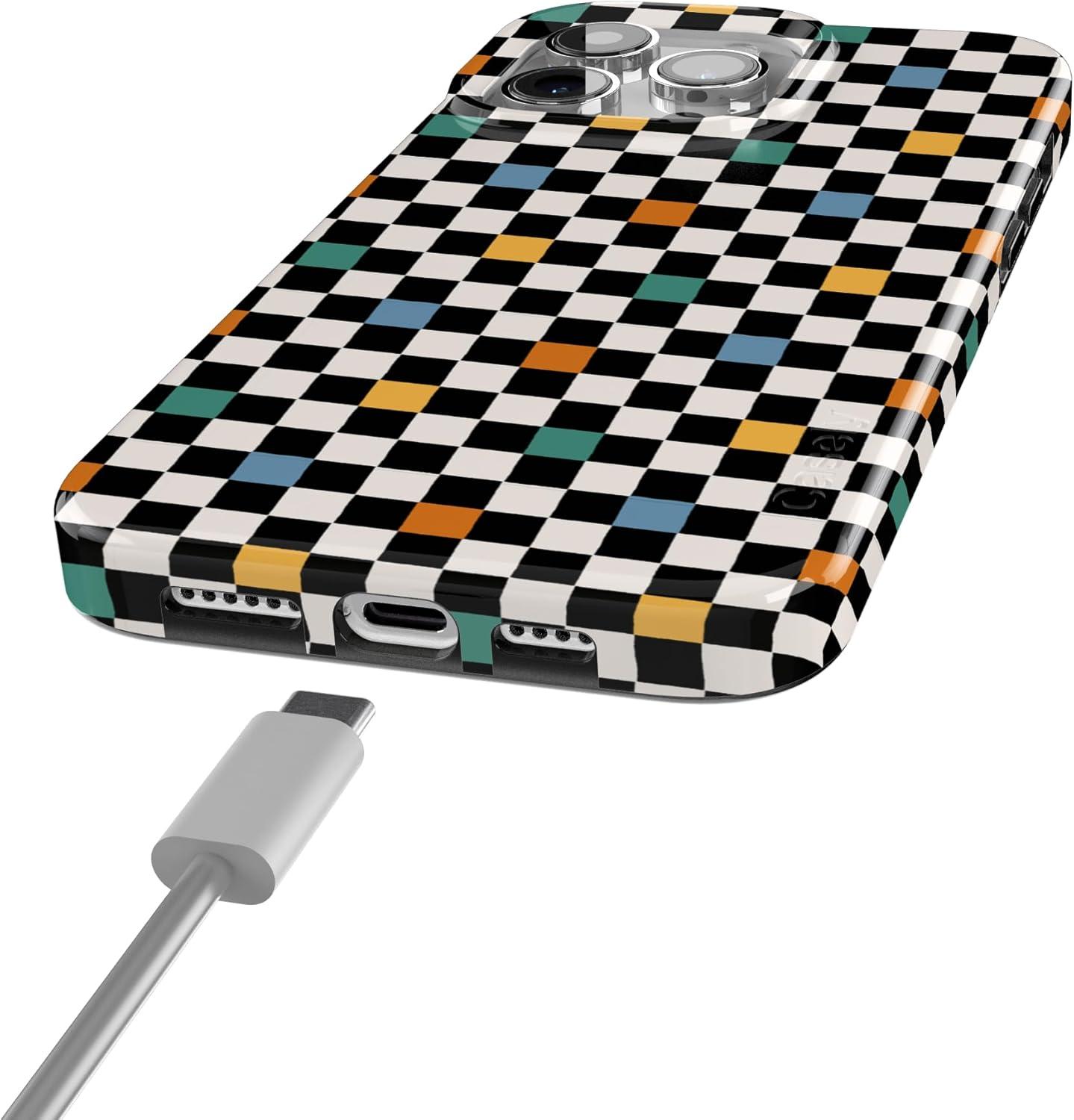 Casely iPhone 15 Pro Max Case | Butter Yellow Stripes | Sunday Best | Compatible with MagSafe | Classic Ultra Thin Design(Old Skool | Retro Checkerboard)