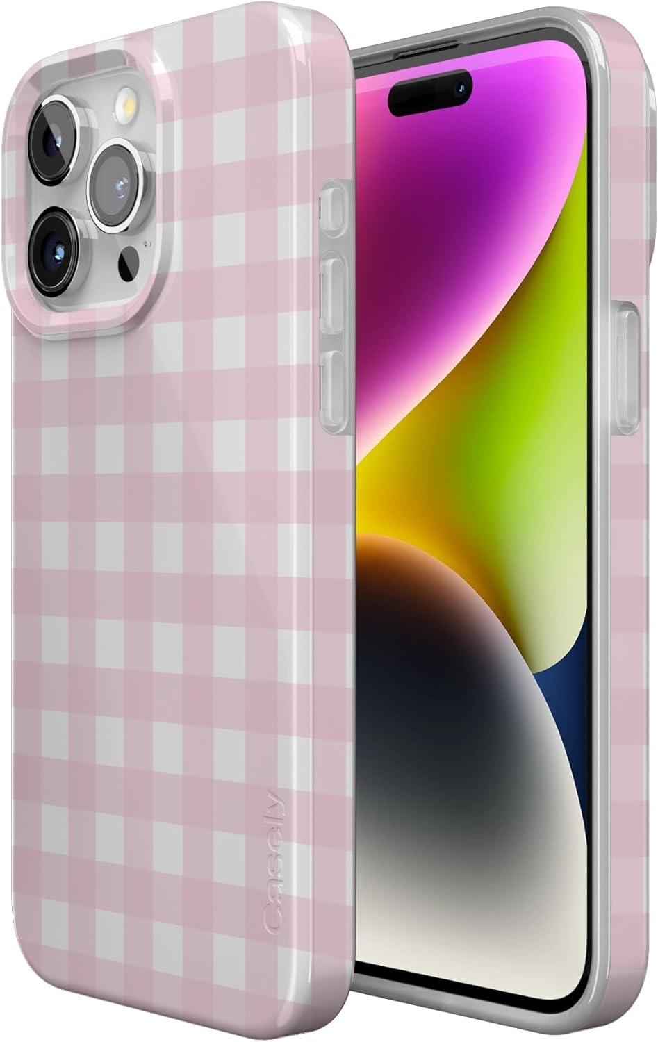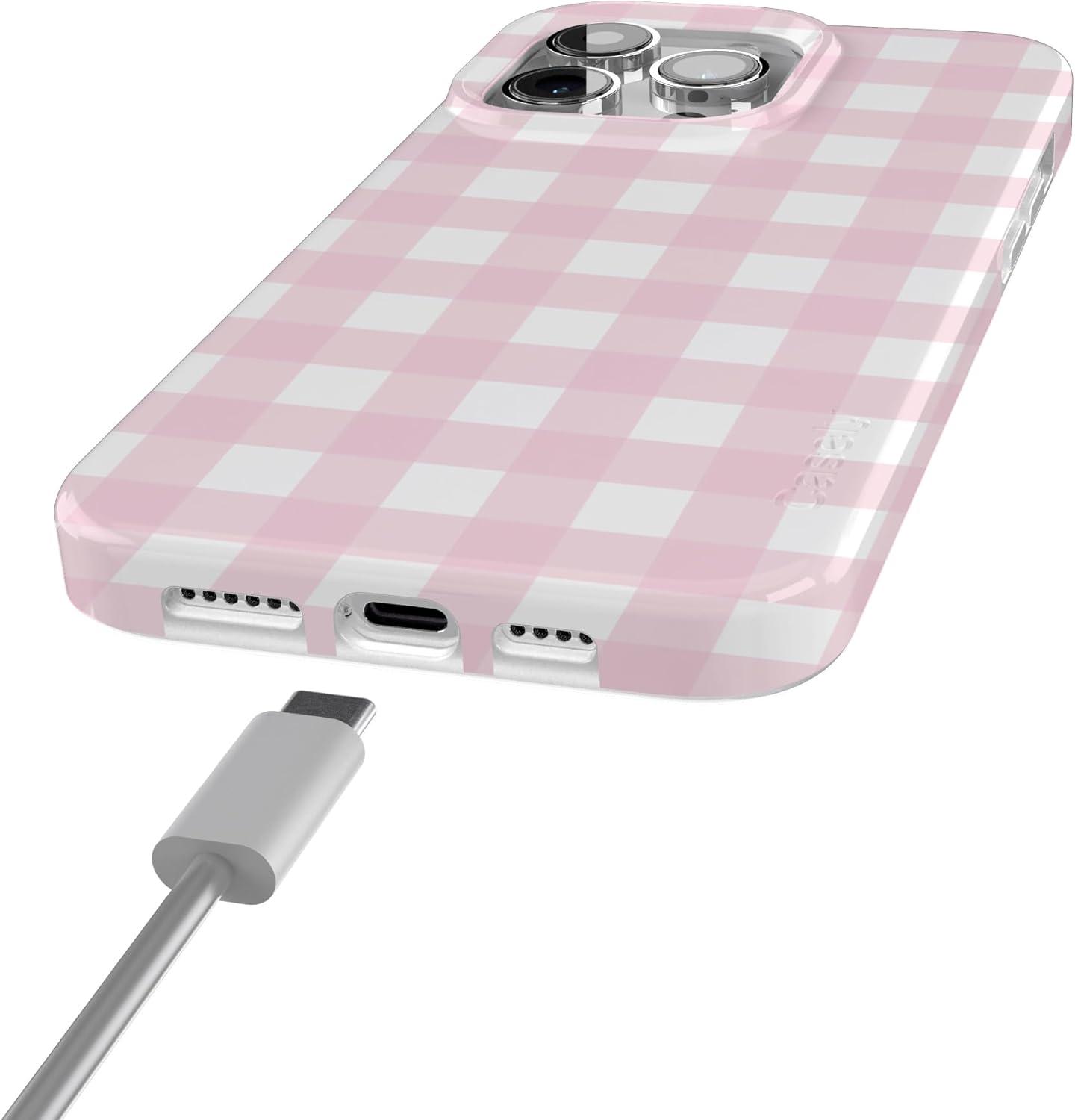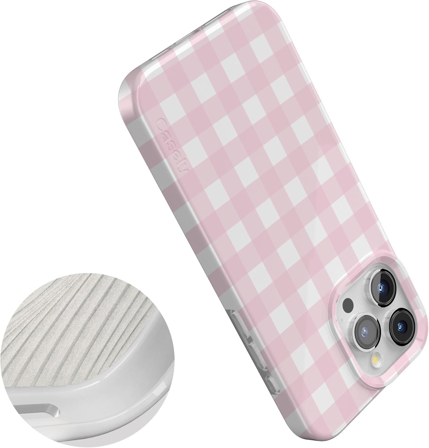 Casely iPhone 15 Pro Max Case | Butter Yellow Stripes | Sunday Best | Compatible with MagSafe | Classic Ultra Thin Design(Pink Plaid | Sunday Best)