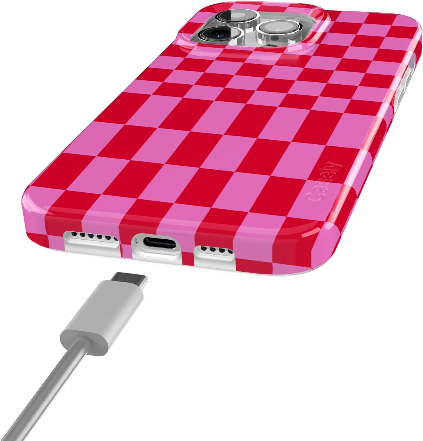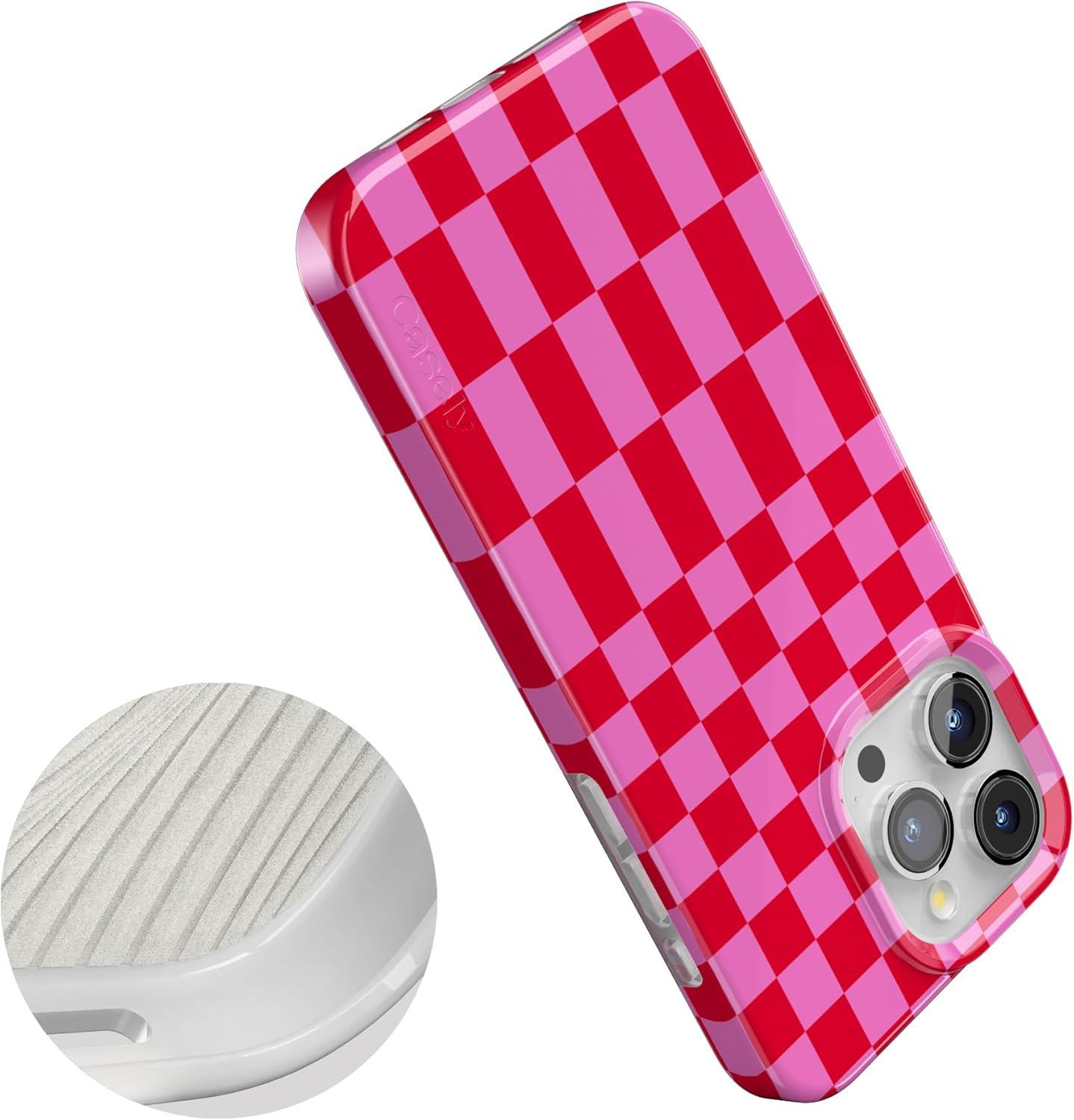 Casely iPhone 15 Pro Max Case | Butter Yellow Stripes | Sunday Best | Compatible with MagSafe | Classic Ultra Thin Design(Vibe Check | Pink Checkerboard)
