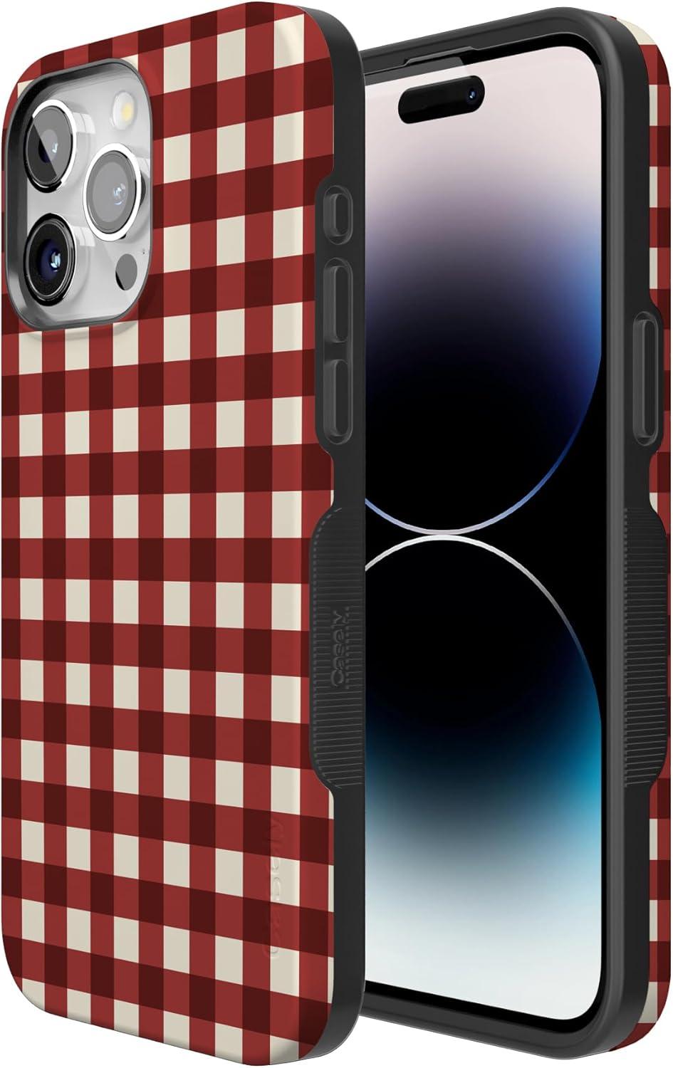 Casely iPhone 15 Pro Max Case | Checked Twice | Red Plaid | Bold Protective Design | MagSafe Compatible Design