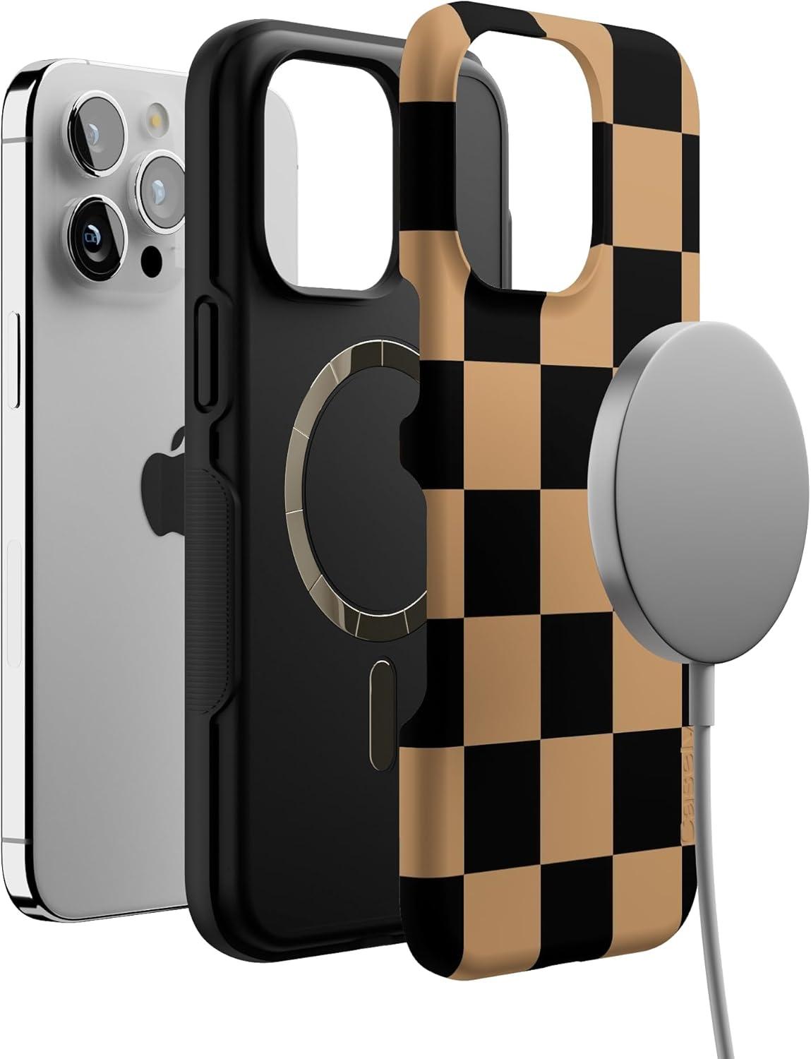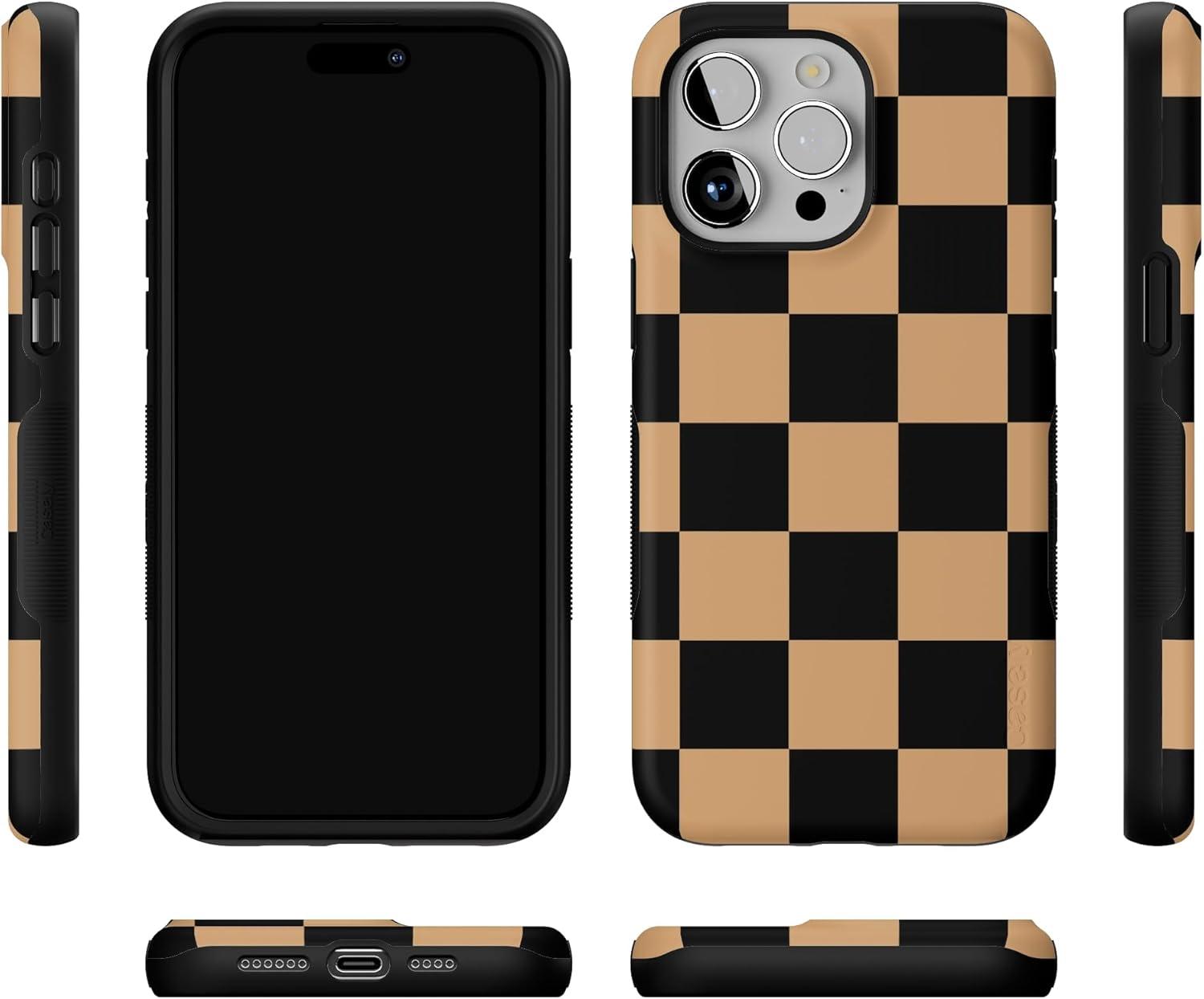 Casely iPhone 15 Pro Max Case | Fit Check | Black & Brown Checkerboard | Bold Protective Design | MagSafe Compatible Design