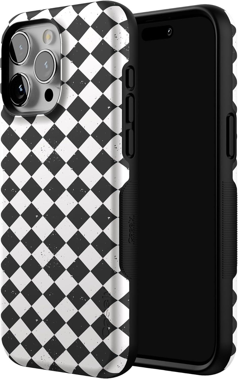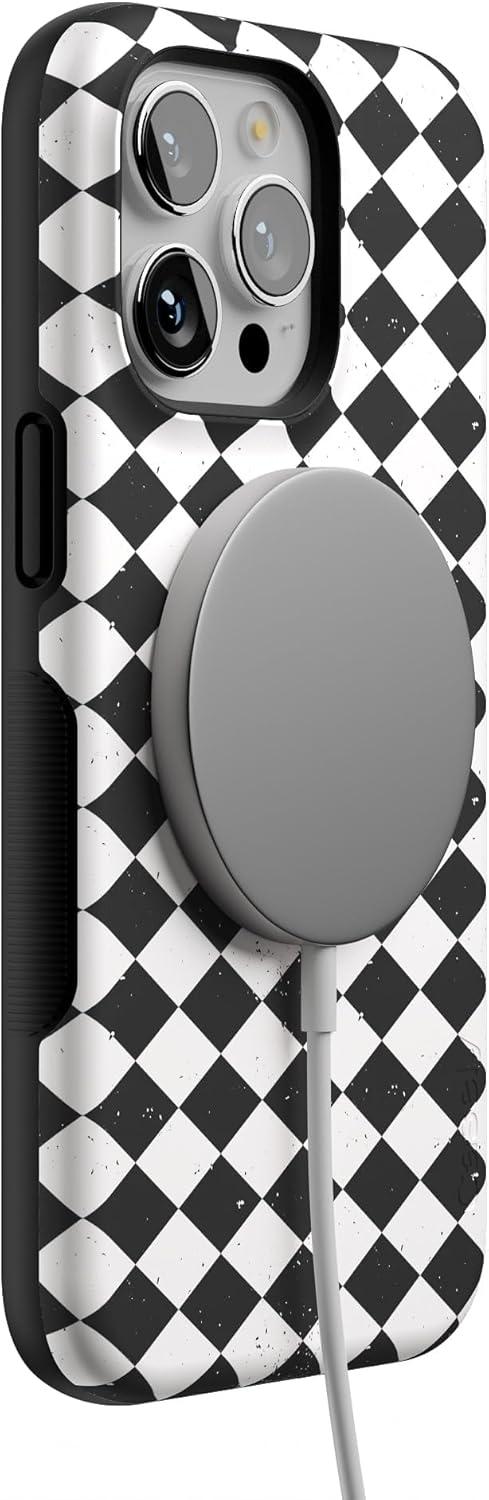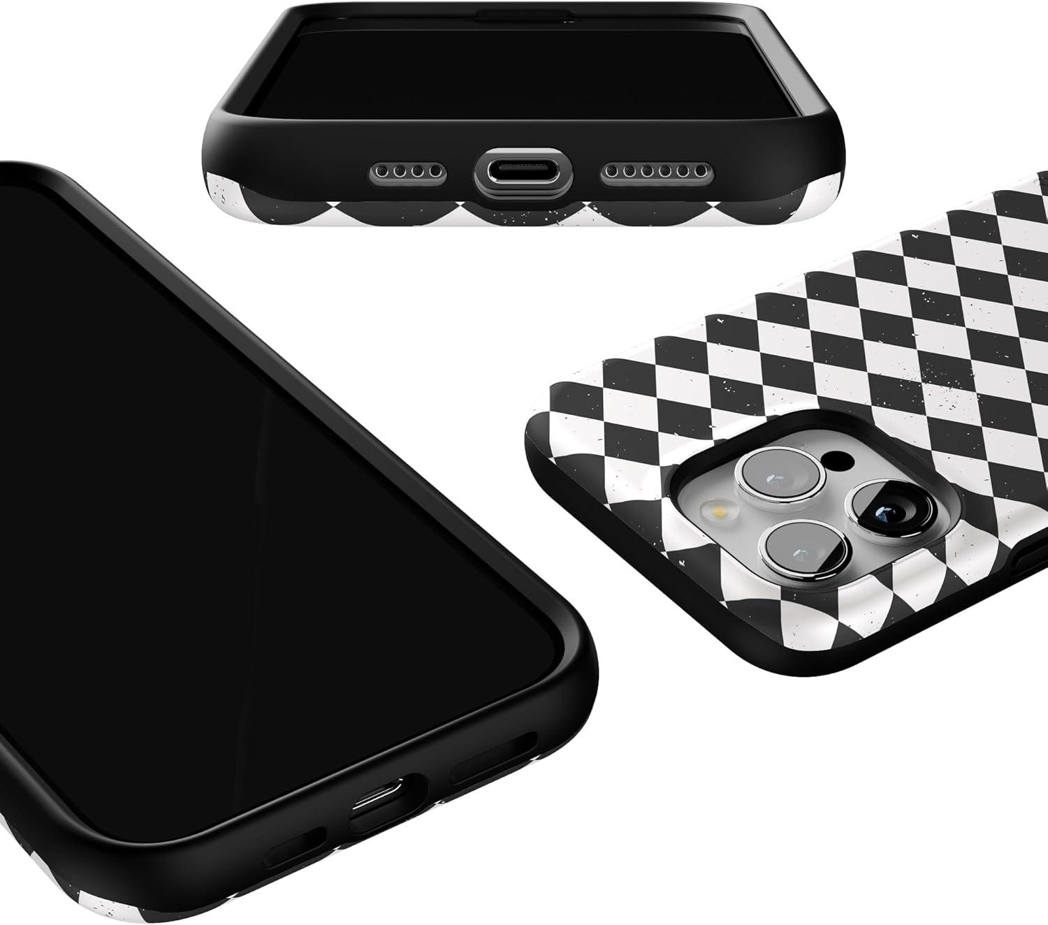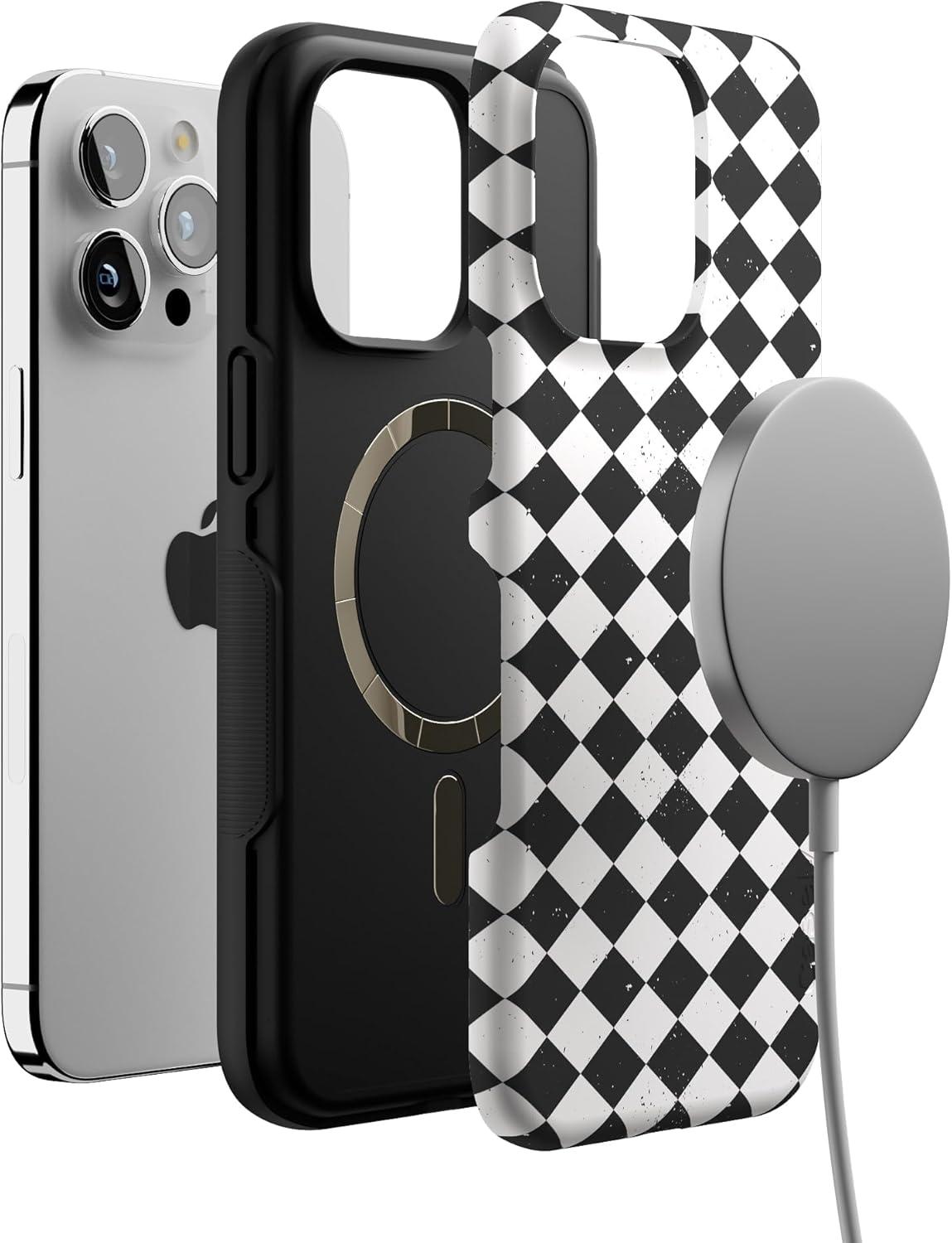 Casely iPhone 15 Pro Max Case | Harlequin Salem Diamond | Black and White | Bold Protective Design | MagSafe Compatible Design