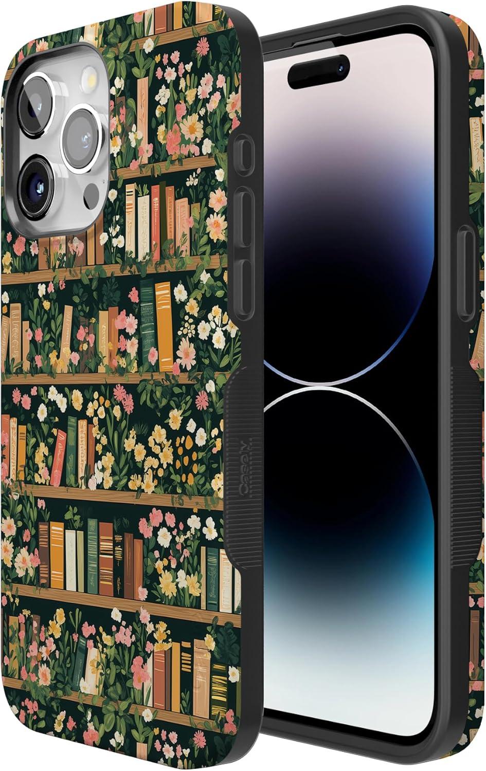 Casely iPhone 15 Pro Max Case | Heart Throb | Endless Hearts | Bold Protective Design | Compatible with MagSafe(Book Nook | Floral Library)
