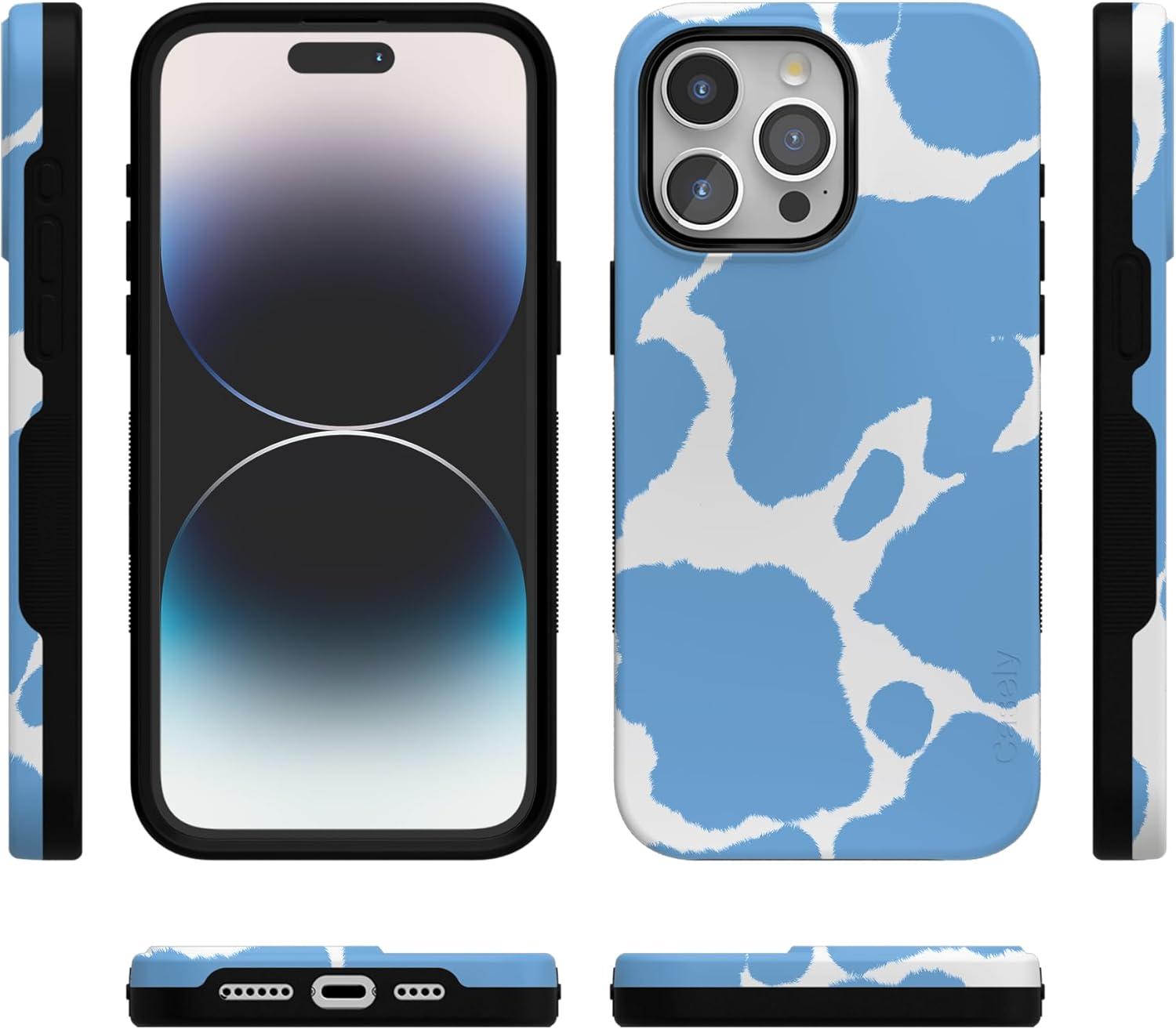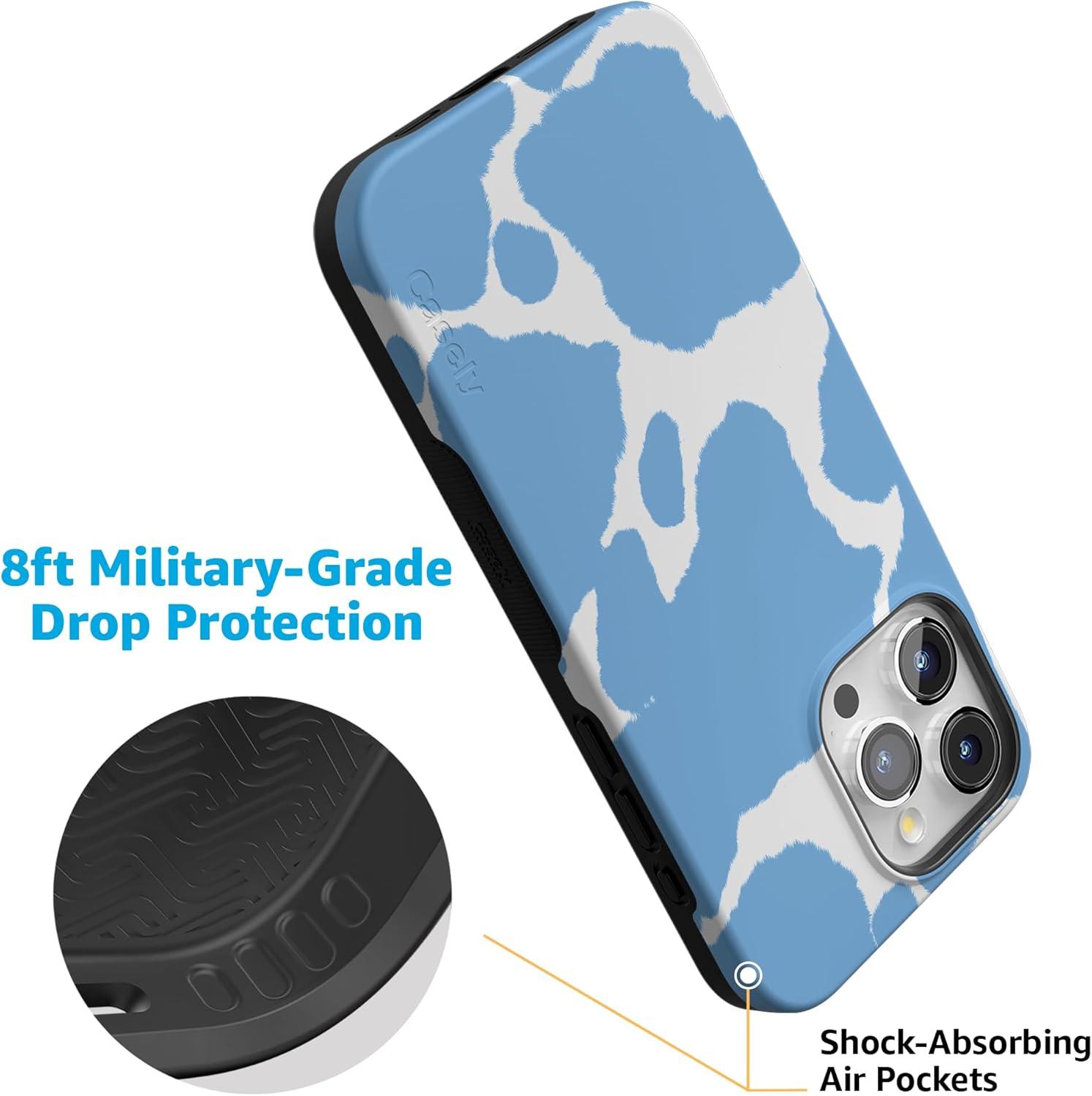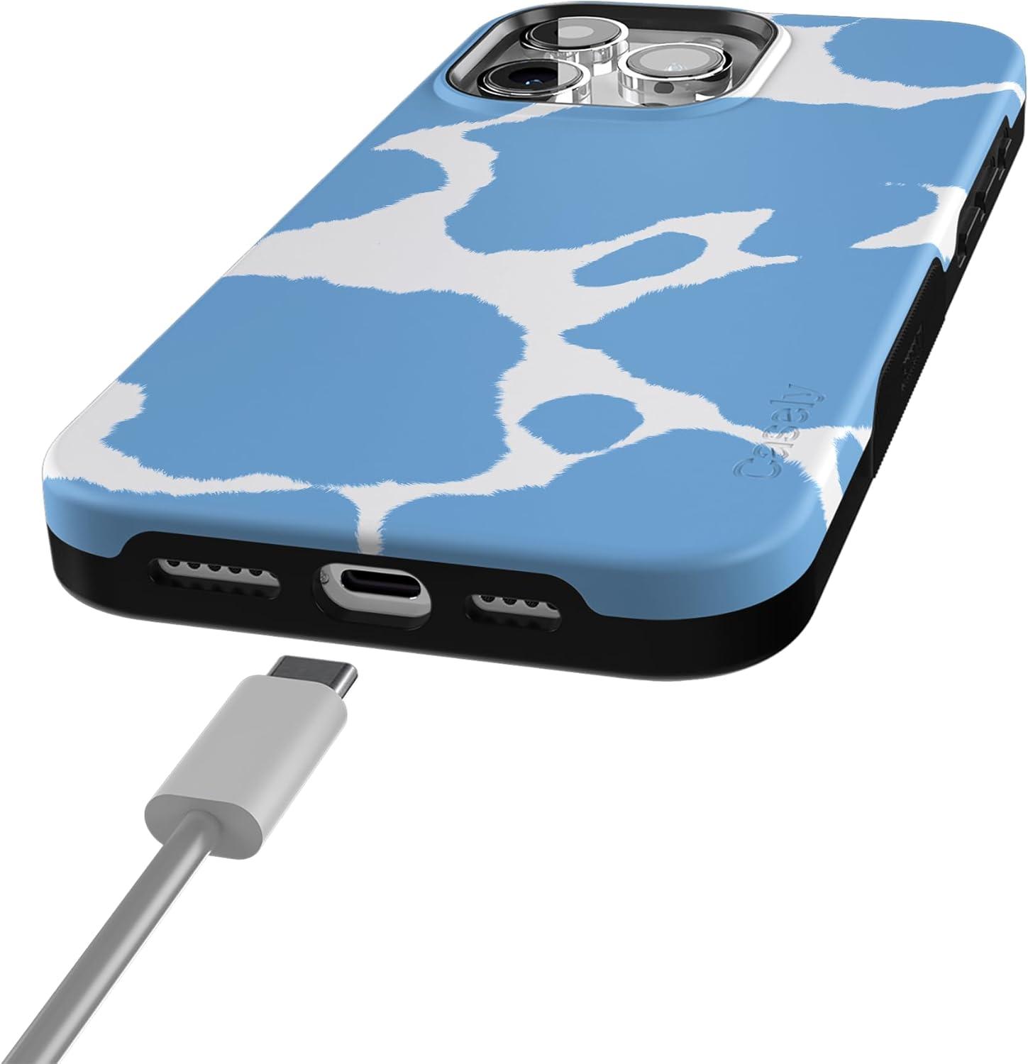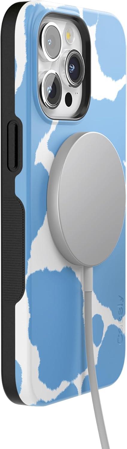 Casely iPhone 15 Pro Max Case | Heart Throb | Endless Hearts | Bold Protective Design | Compatible with MagSafe(Current MOOd | Light Blue Cow Print)