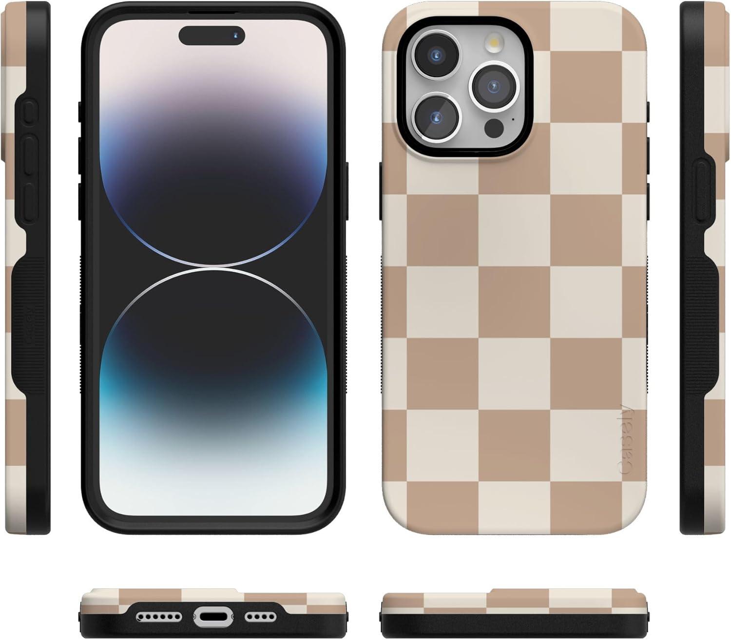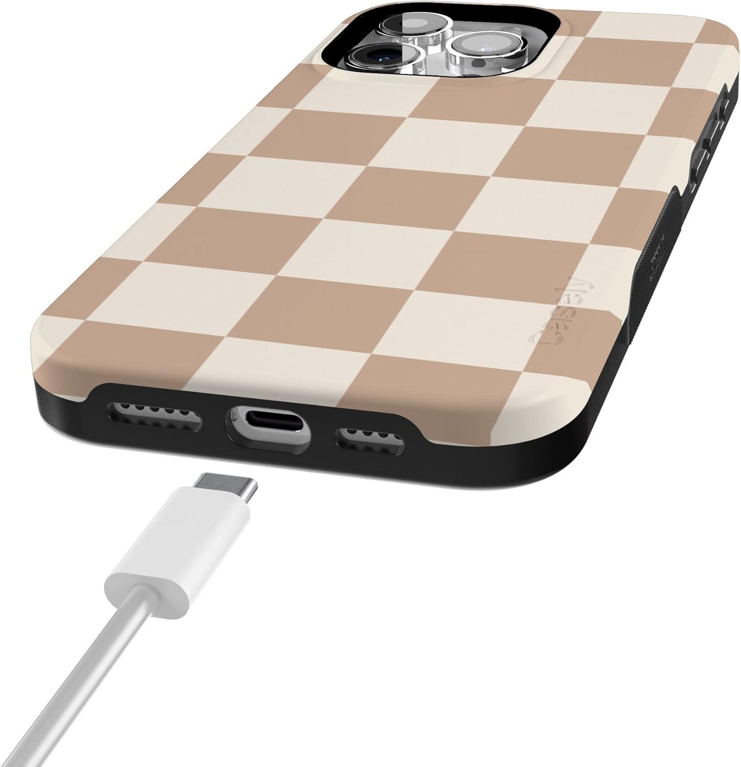 Casely iPhone 15 Pro Max Case | Heart Throb | Endless Hearts | Bold Protective Design | Compatible with MagSafe(Fit Check | Neutral Checkerboard)