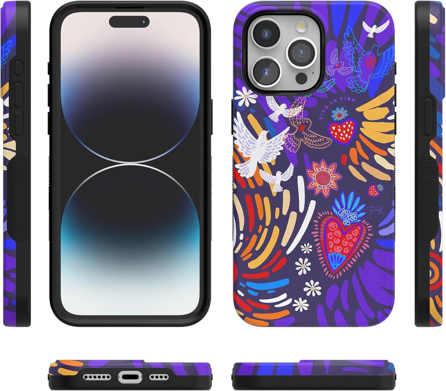 Casely iPhone 15 Pro Max Case | Heart Throb | Endless Hearts | Bold Protective Design | Compatible with MagSafe(Frida Kahlo | Viva La Vida | Floral Collage)
