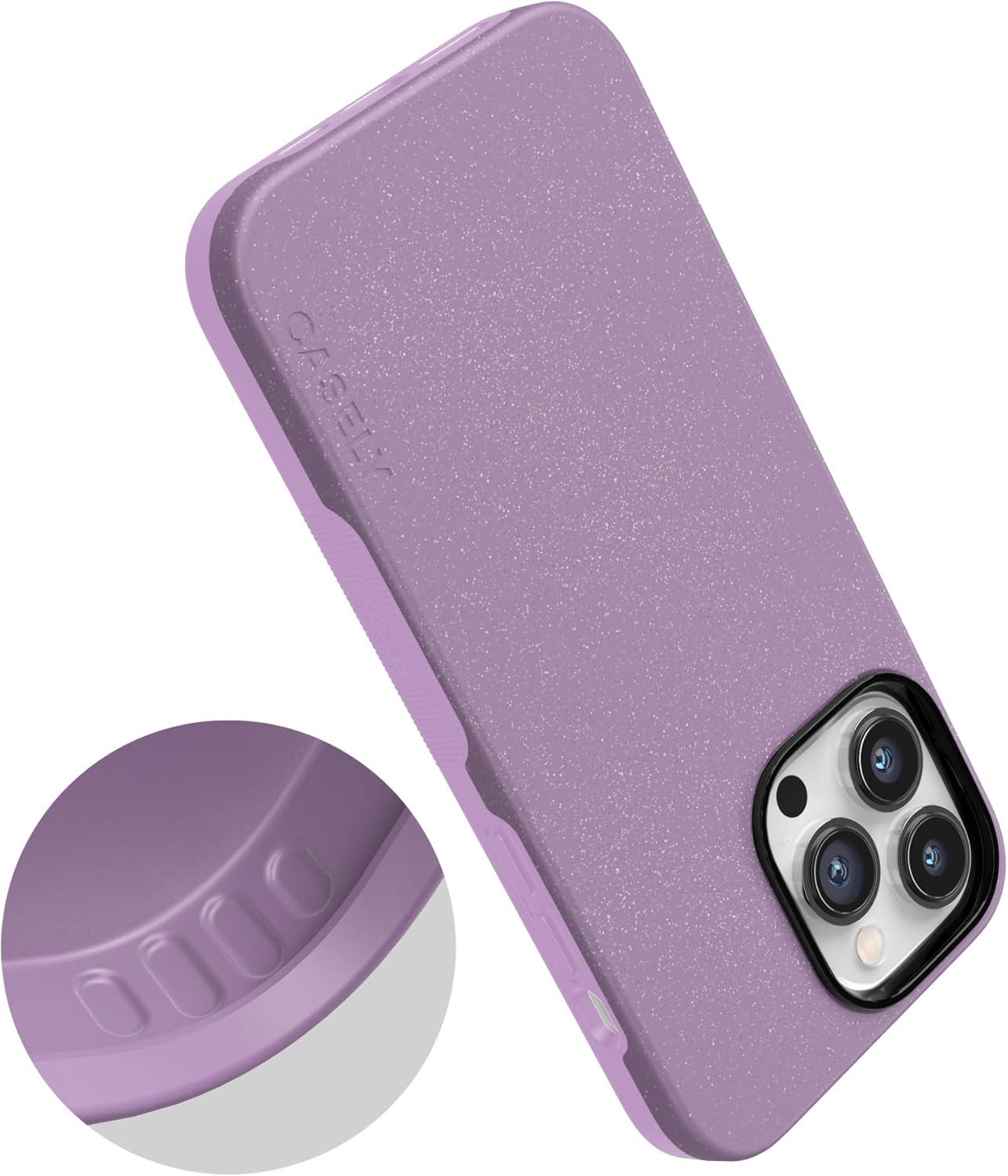 Casely iPhone 15 Pro Max Case | Heart Throb | Endless Hearts | Bold Protective Design | Compatible with MagSafe(Lavender Waves | Purple Shimmer Glitter)