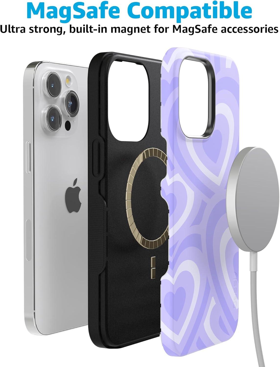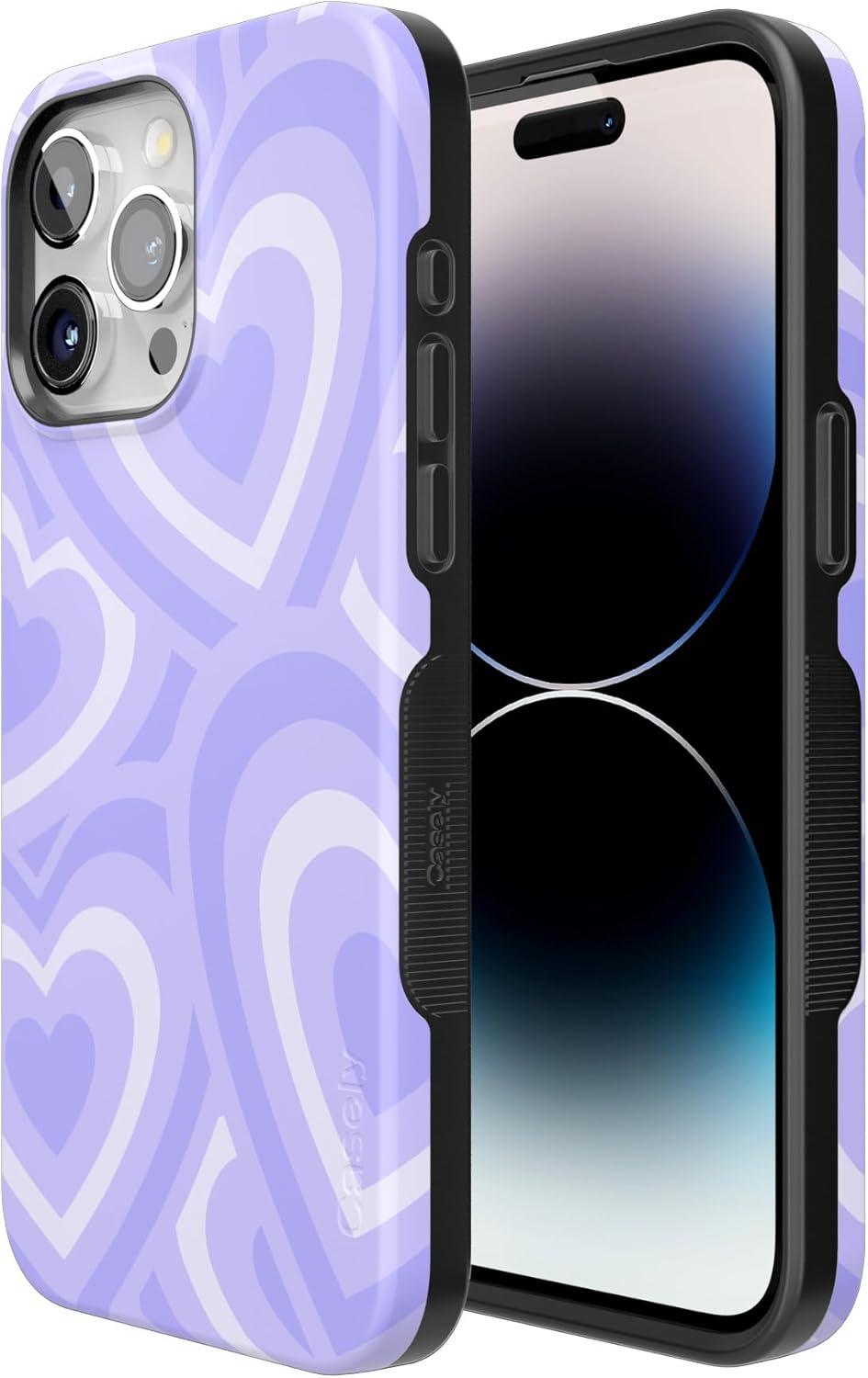 Casely iPhone 15 Pro Max Case | Heart Throb | Endless Hearts | Bold Protective Design | Compatible with MagSafe(Love Song | Lavender Heart)