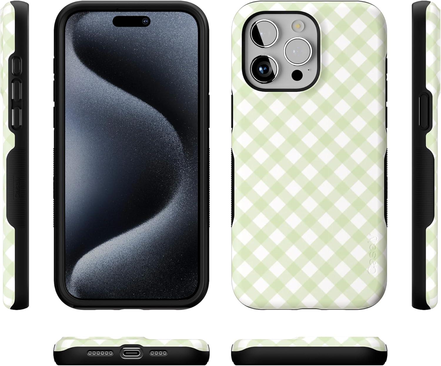 Casely iPhone 15 Pro Max Case | Heart Throb | Endless Hearts | Bold Protective Design | Compatible with MagSafe(Mint Lattice | Sunday Best)
