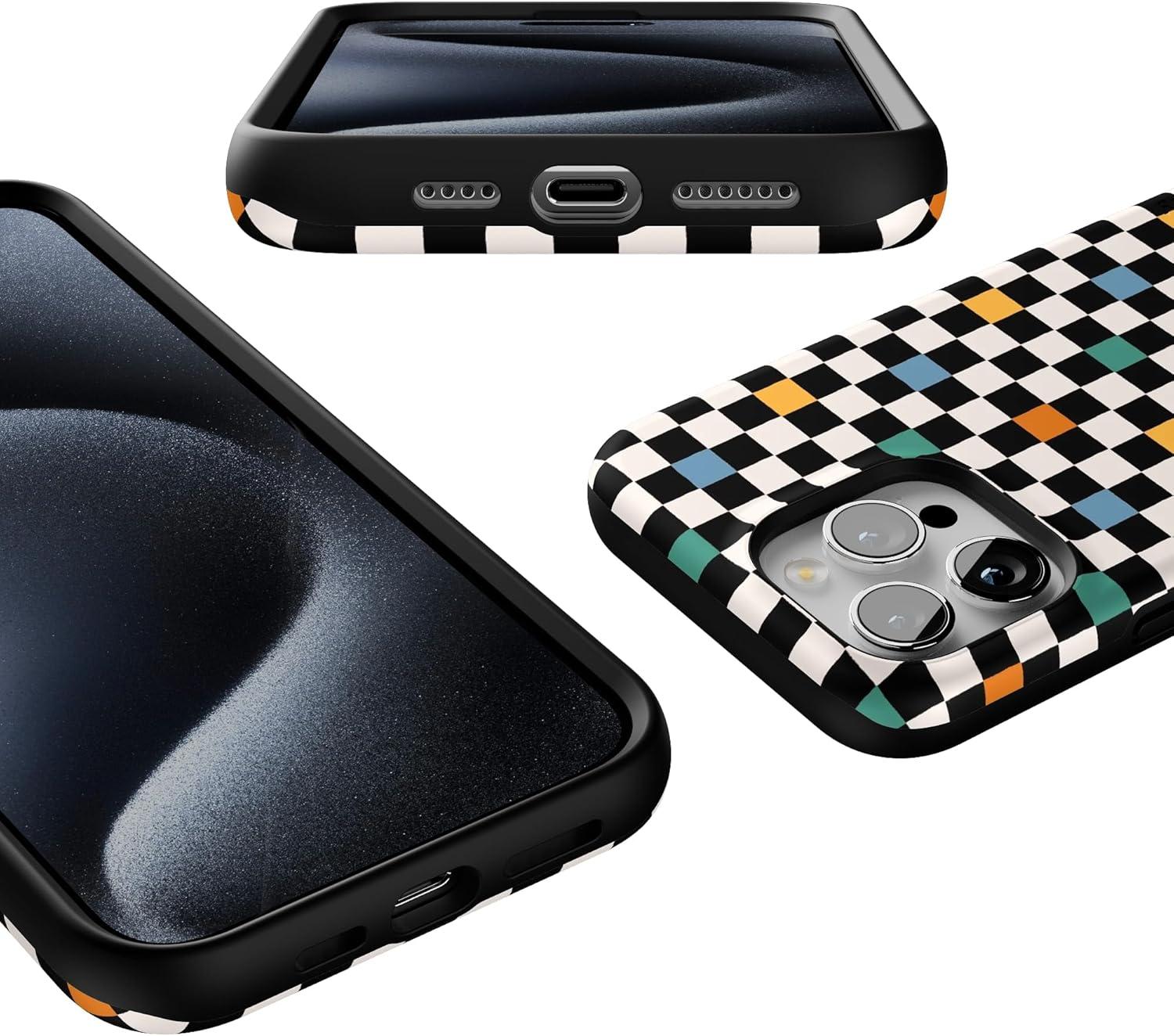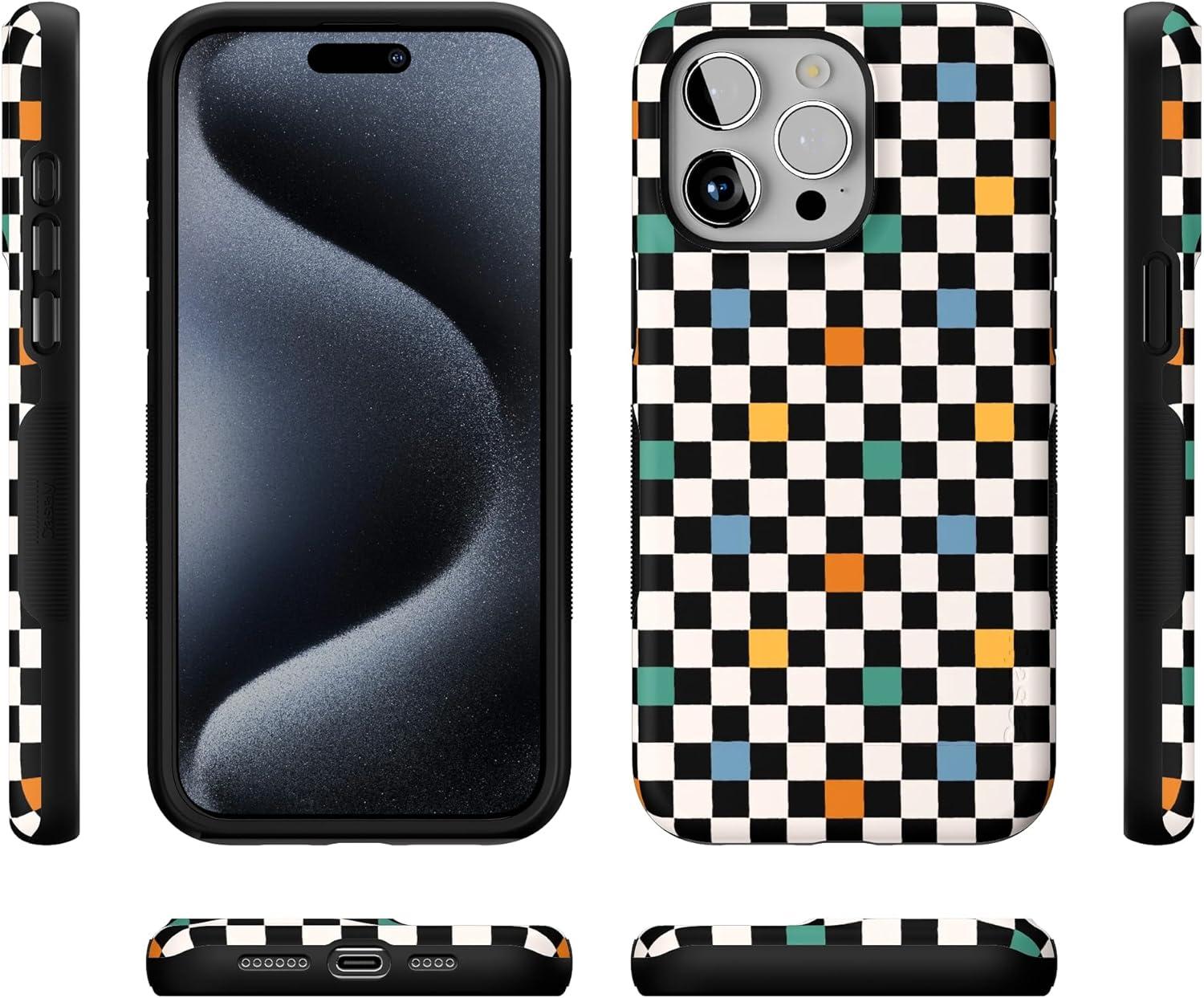 Casely iPhone 15 Pro Max Case | Heart Throb | Endless Hearts | Bold Protective Design | Compatible with MagSafe(Old Skool | Retro Checkerboard)