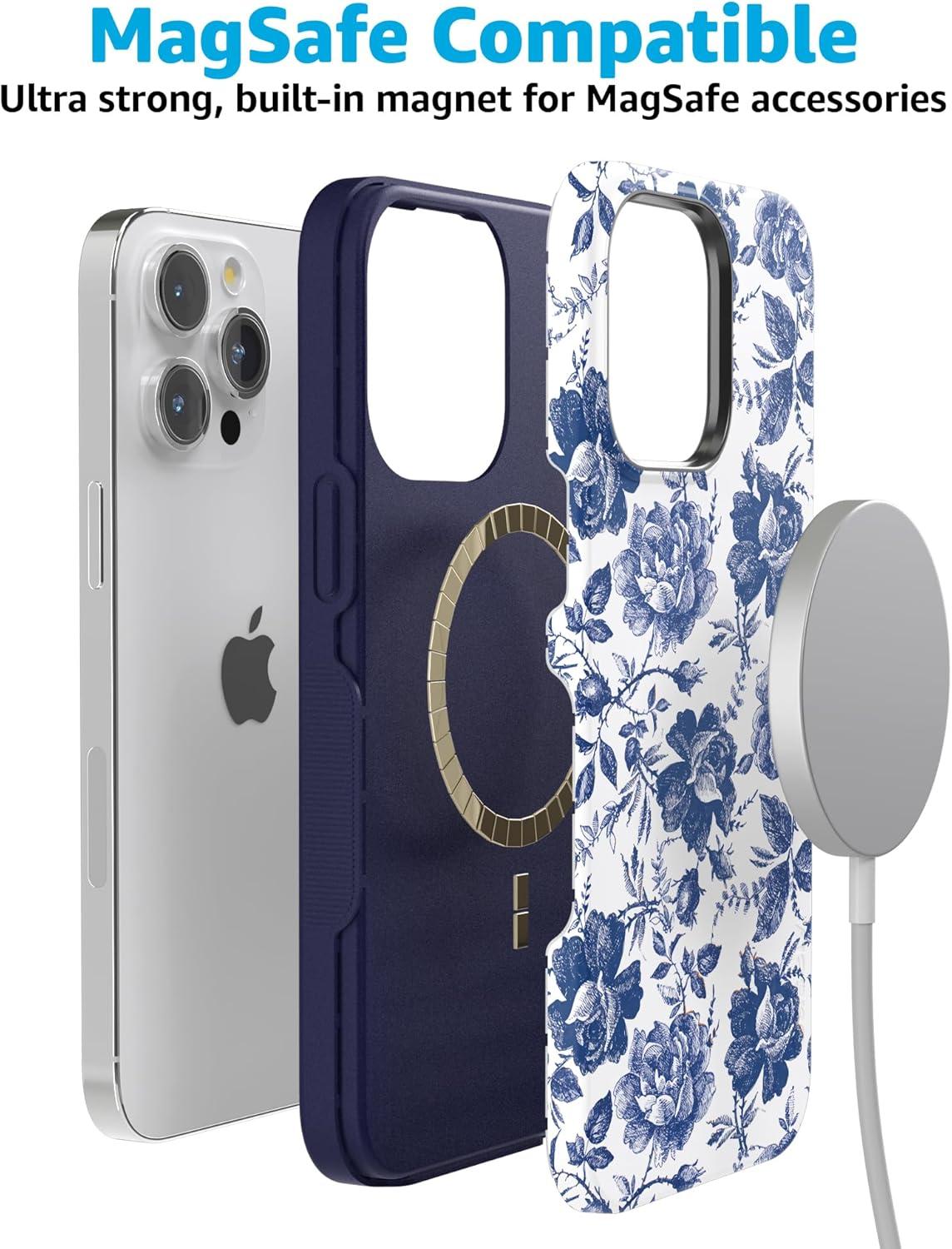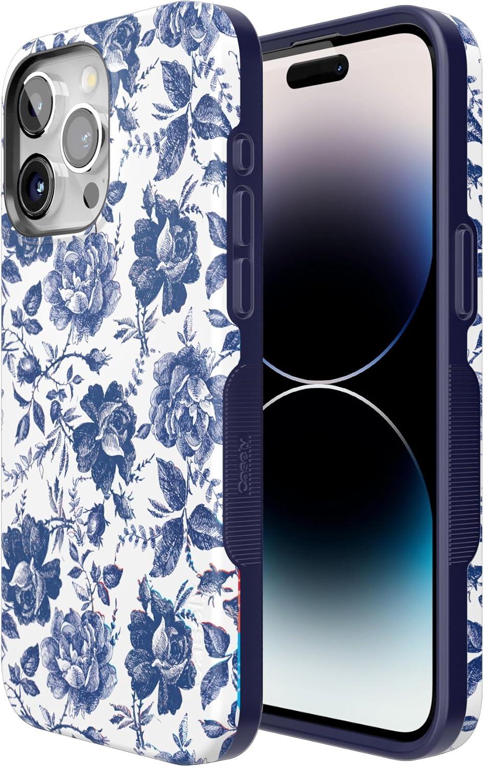 Casely iPhone 15 Pro Max Case | Heart Throb | Endless Hearts | Bold Protective Design | Compatible with MagSafe(Rose to Fame | Blue & White Rose Floral)
