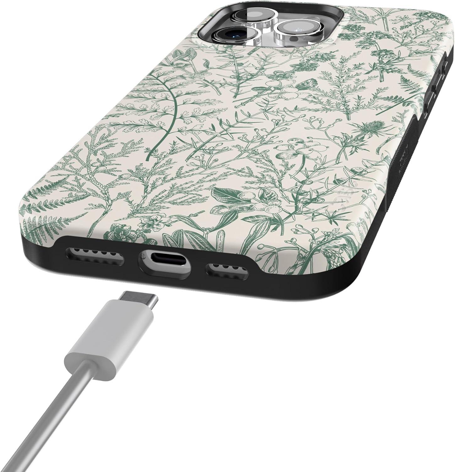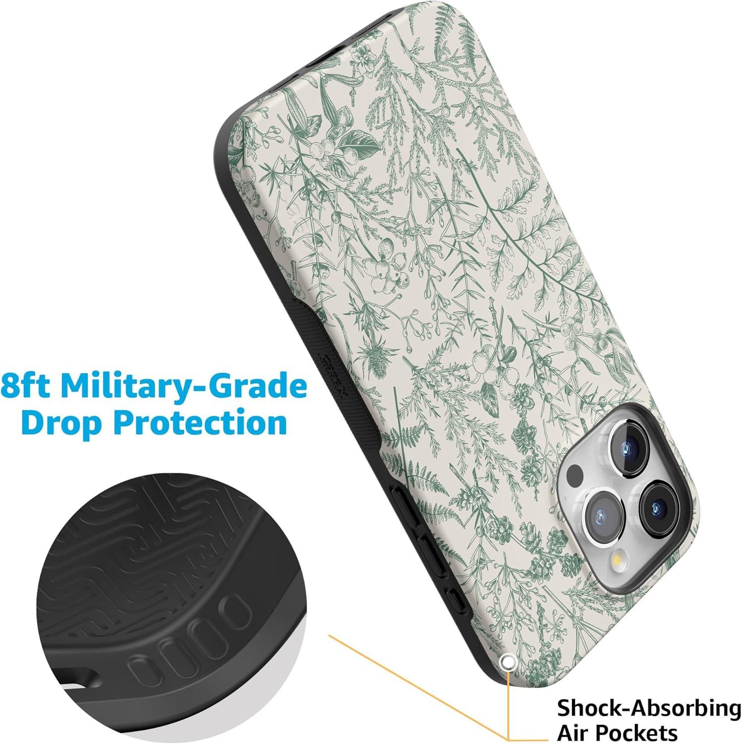 Casely iPhone 15 Pro Max Case | Heart Throb | Endless Hearts | Bold Protective Design | Compatible with MagSafe(Sage Garden | Green Floral)