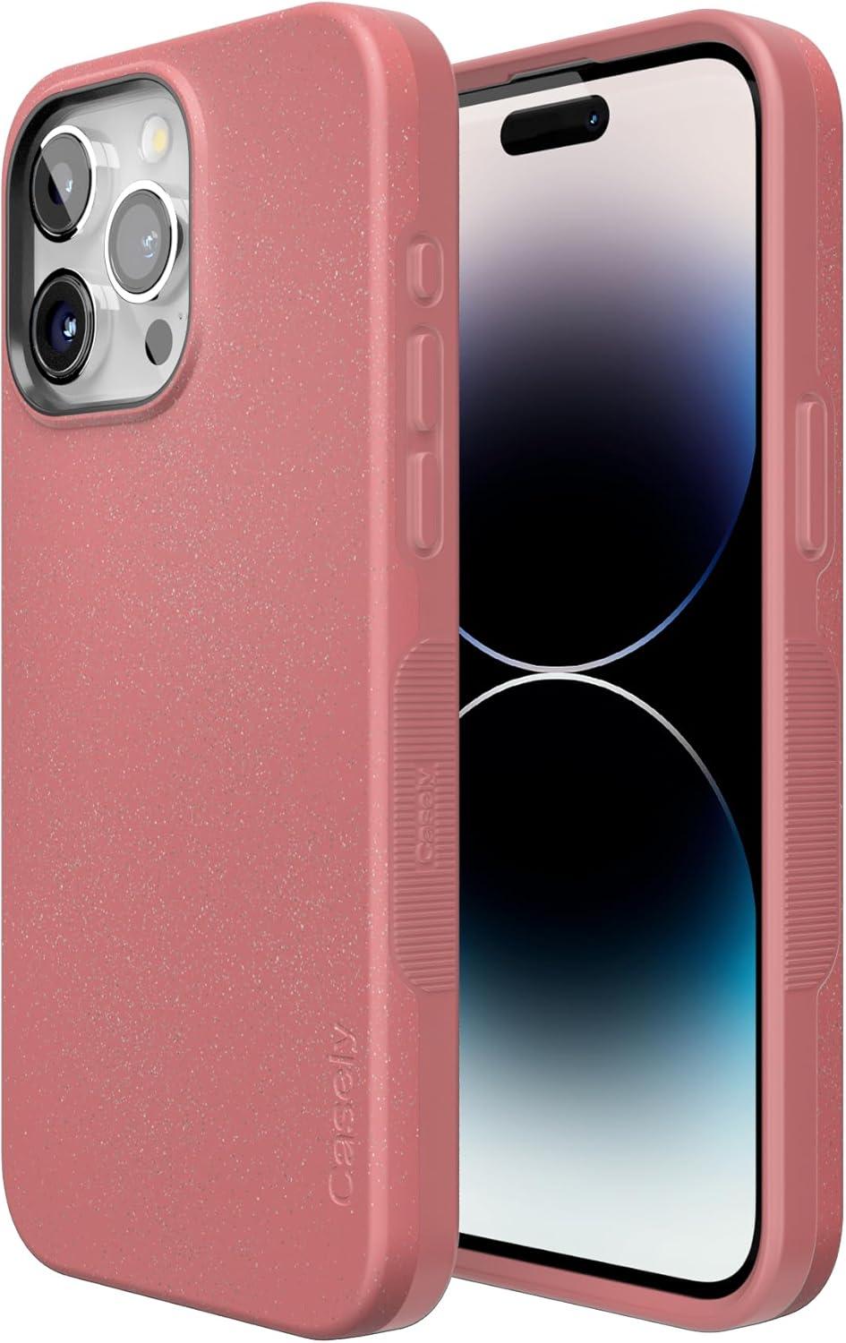Casely iPhone 15 Pro Max Case | Heart Throb | Endless Hearts | Bold Protective Design | Compatible with MagSafe(Starfish Wishes | Coral Pink Shimmer Glitter)