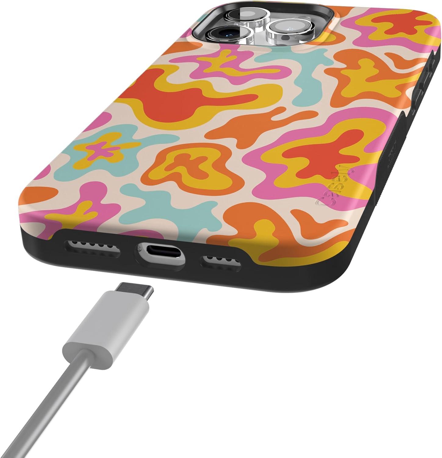 Casely iPhone 15 Pro Max Case | Heart Throb | Endless Hearts | Bold Protective Design | Compatible with MagSafe(Tropical Color Splash | Abstract Retro)
