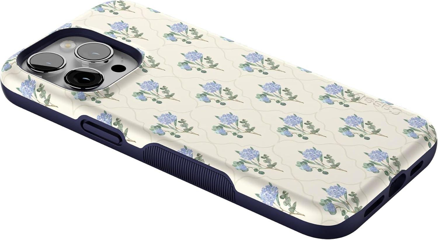 Casely iPhone 15 Pro Max Case | Heart Throb | Endless Hearts | Bold Protective Design | Compatible with MagSafe(Vintage Garden | Blue Hydrangea)