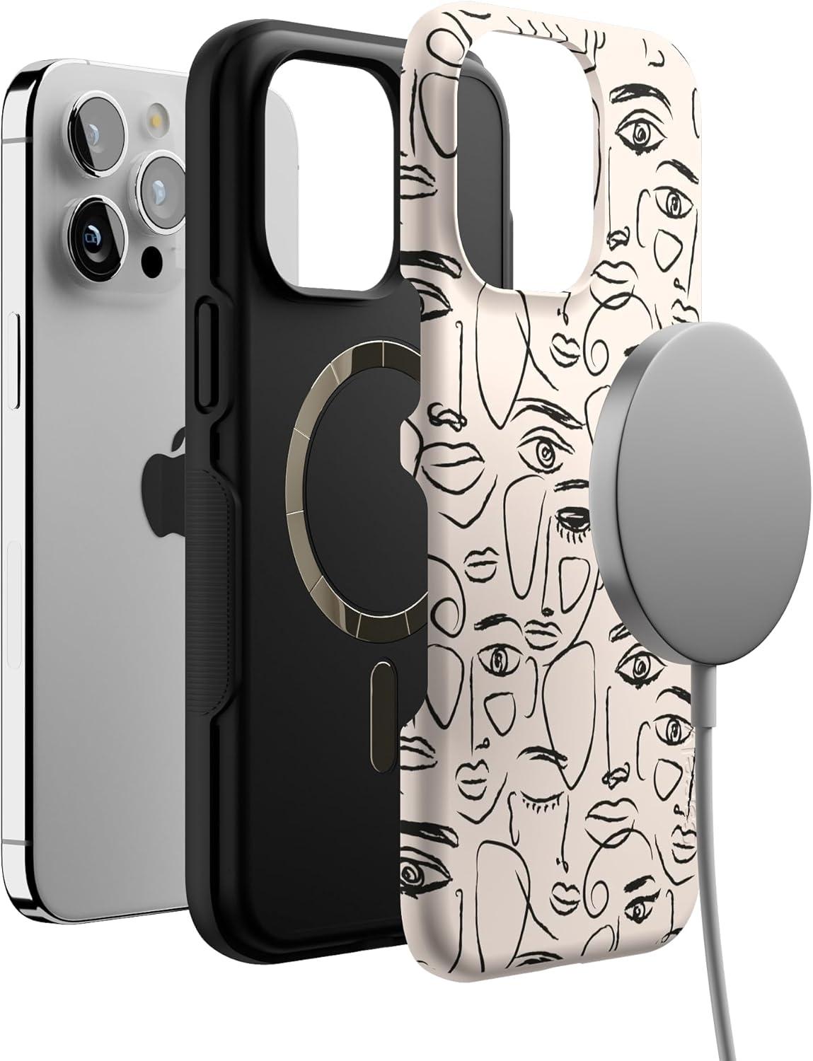 Casely iPhone 15 Pro Max Case | Heart Throb | Endless Hearts | Bold Protective Design | Compatible with MagSafe(We’re All Human | Minimal Face Art)