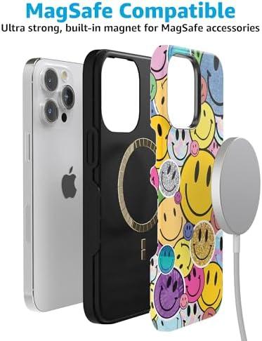 Casely iPhone 15 Pro Max Case | Kiwi Kiss | Matcha Green Shimmer Glitter | Bold Protective Design | Compatible with MagSafe(All Smiles | Smiley Face Sticker)