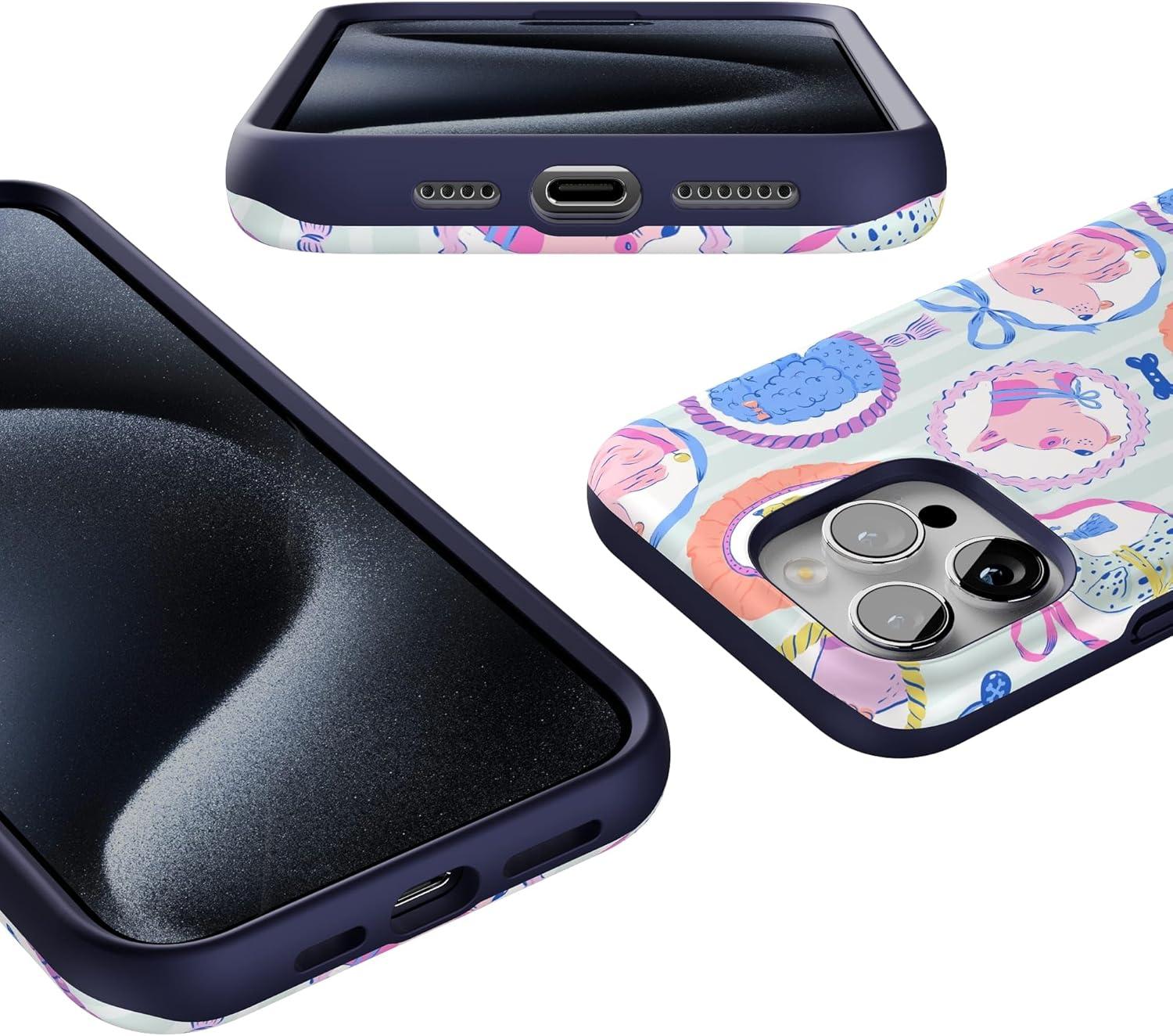Casely iPhone 15 Pro Max Case | Kiwi Kiss | Matcha Green Shimmer Glitter | Bold Protective Design | Compatible with MagSafe(Chateau Pups | French Dog)