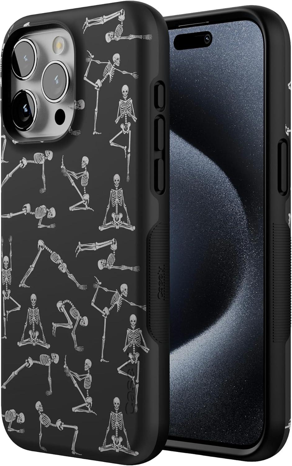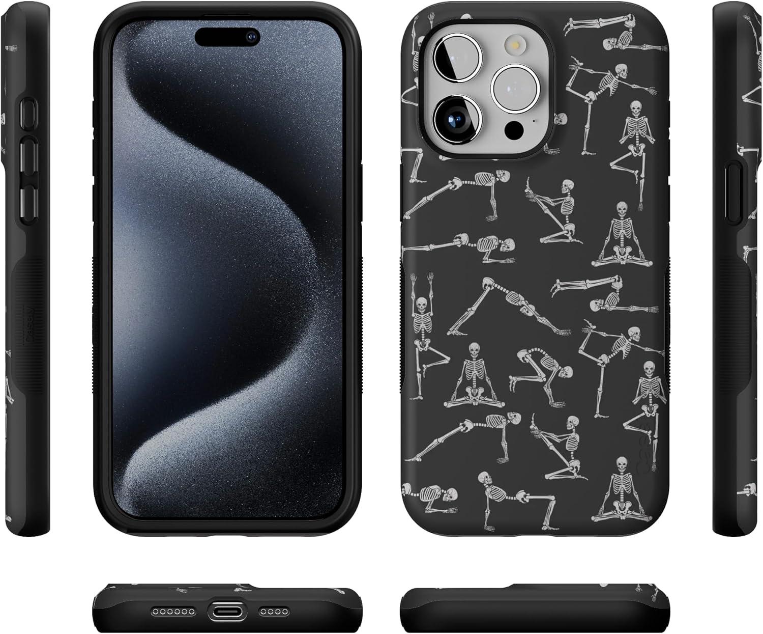 Casely iPhone 15 Pro Max Case | Kiwi Kiss | Matcha Green Shimmer Glitter | Bold Protective Design | Compatible with MagSafe(Corpse Pose | Skeleton Yoga)