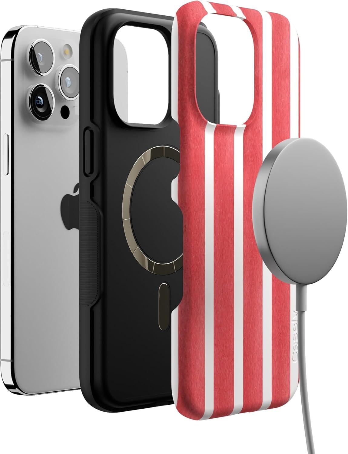 Casely iPhone 15 Pro Max Case | Kiwi Kiss | Matcha Green Shimmer Glitter | Bold Protective Design | Compatible with MagSafe(East Coast Summer | Red Stripes)