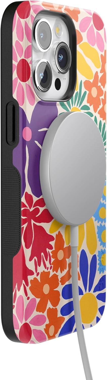 Casely iPhone 15 Pro Max Case | Kiwi Kiss | Matcha Green Shimmer Glitter | Bold Protective Design | Compatible with MagSafe(Flower Patch | Multi-Color Floral)