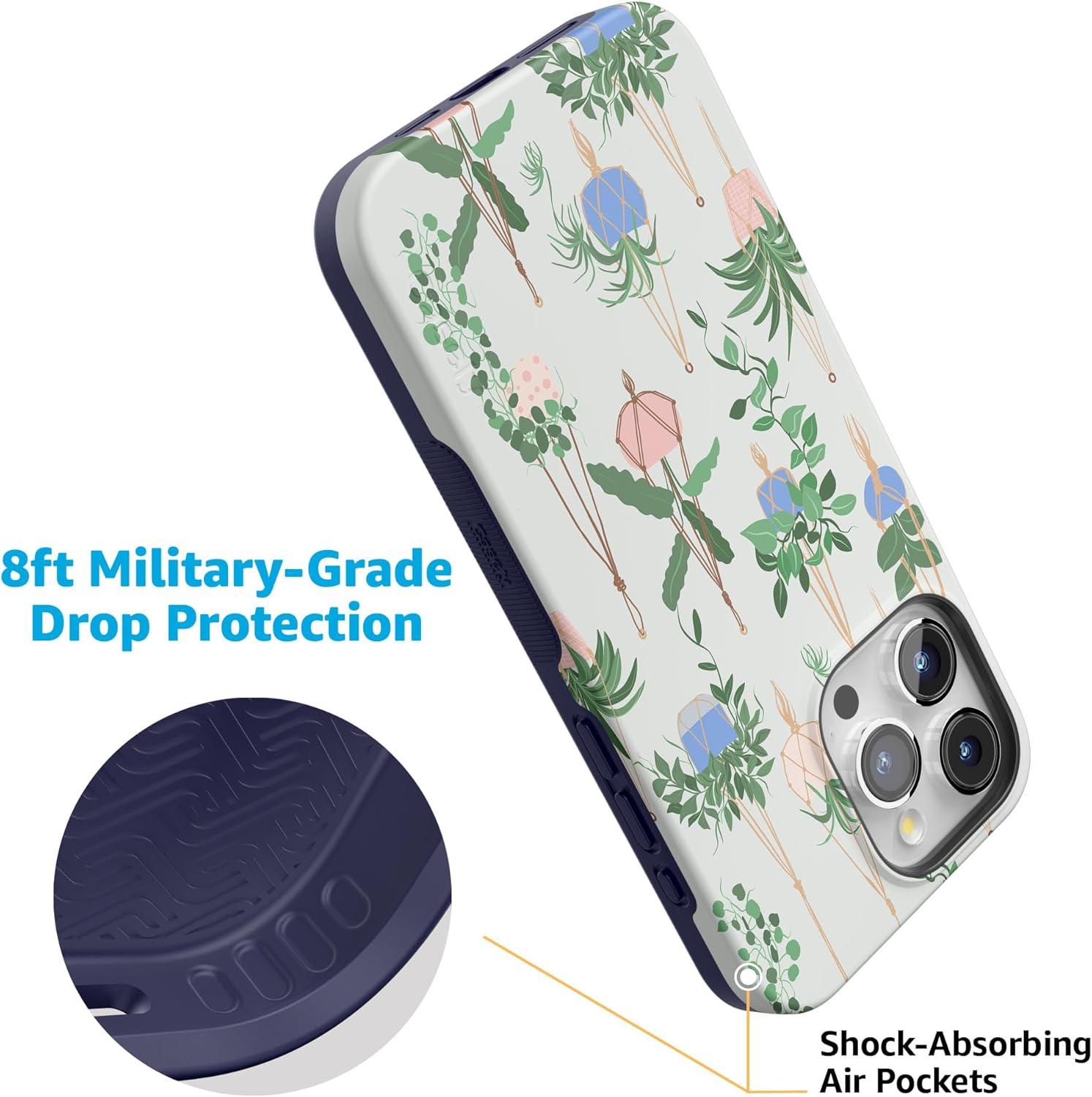Casely iPhone 15 Pro Max Case | Kiwi Kiss | Matcha Green Shimmer Glitter | Bold Protective Design | Compatible with MagSafe(Hanging Around | Potted Plants Floral)