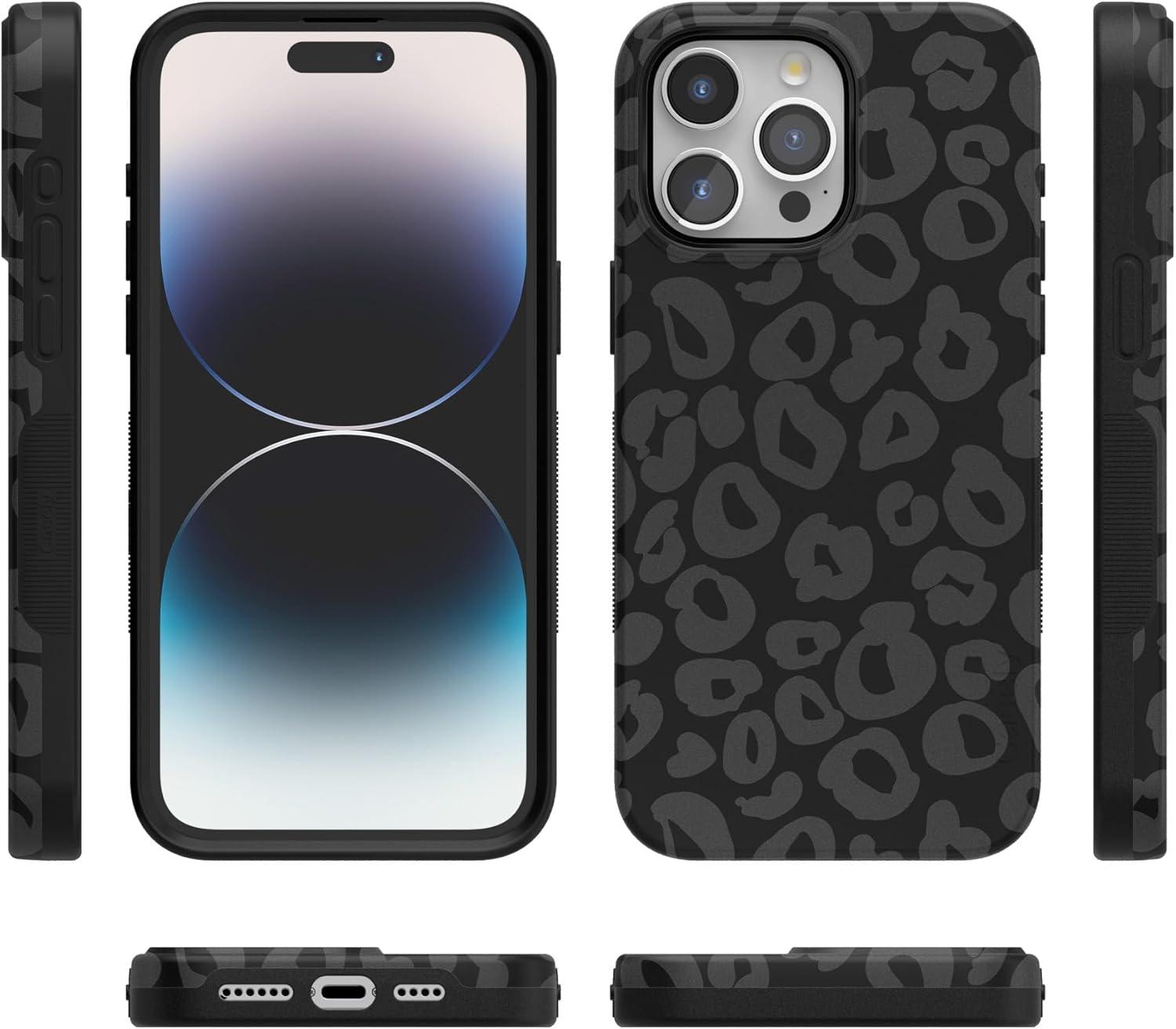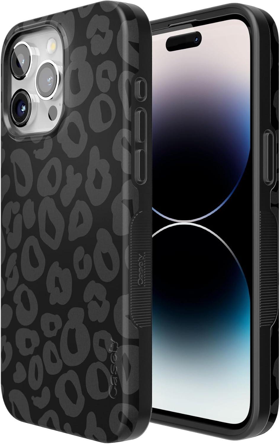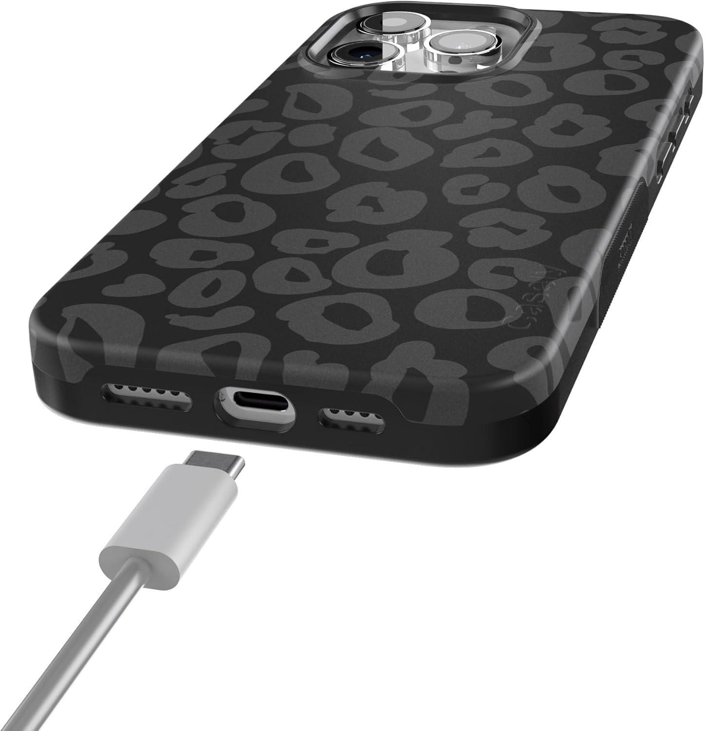 Casely iPhone 15 Pro Max Case | Kiwi Kiss | Matcha Green Shimmer Glitter | Bold Protective Design | Compatible with MagSafe(Into the Wild | Black Leopard)