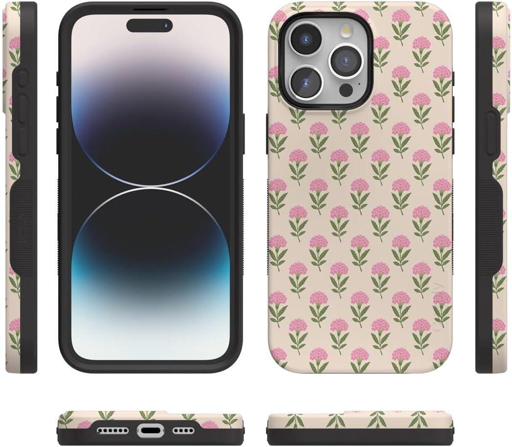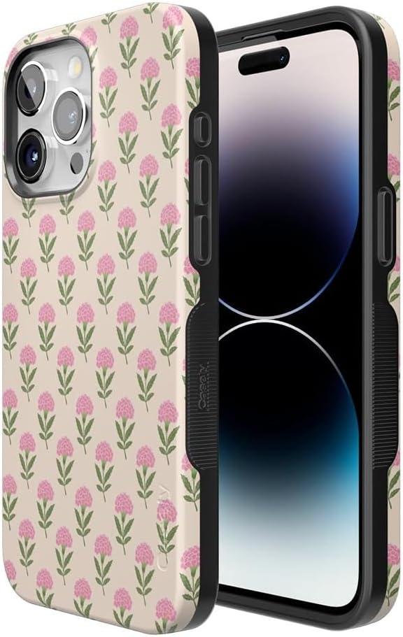 Casely iPhone 15 Pro Max Case | Kiwi Kiss | Matcha Green Shimmer Glitter | Bold Protective Design | Compatible with MagSafe(Jenna’s Flowers | Fun on Weekdays)