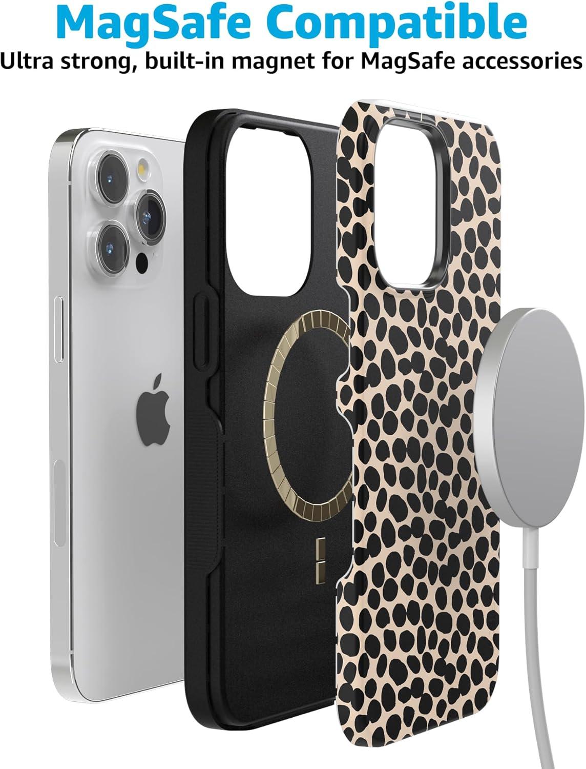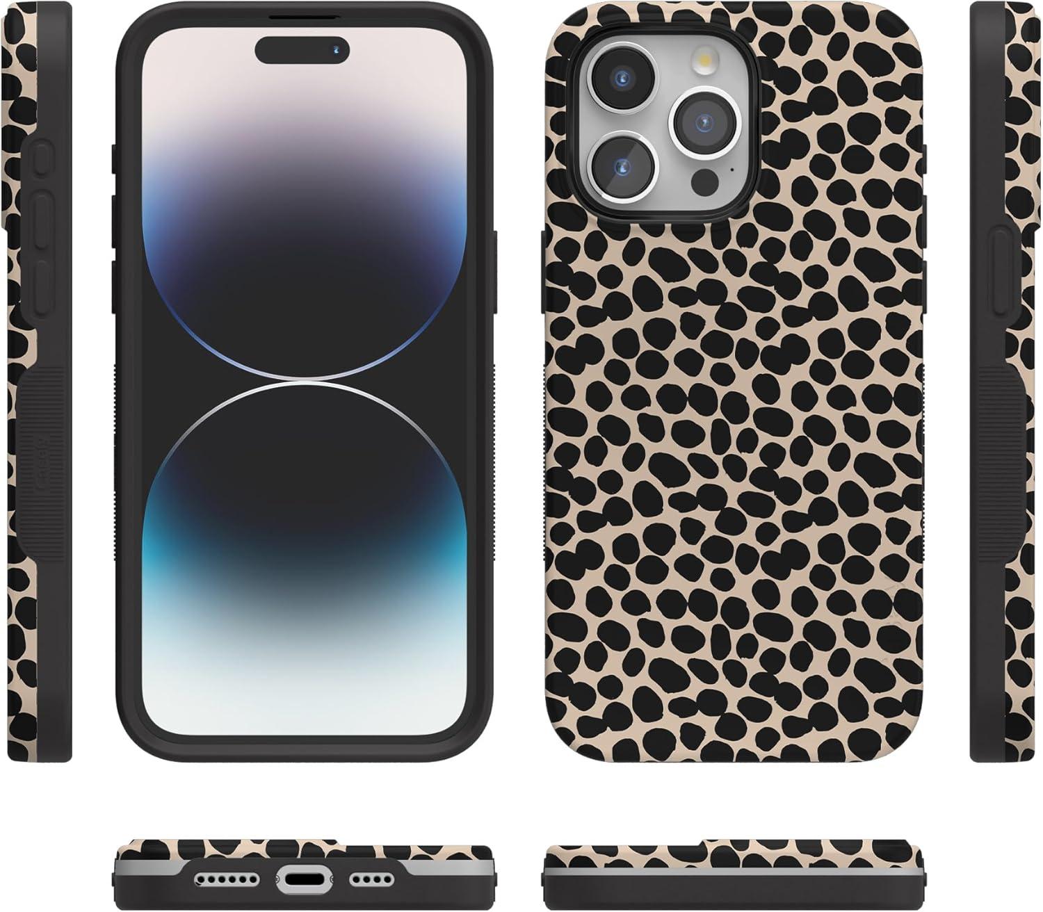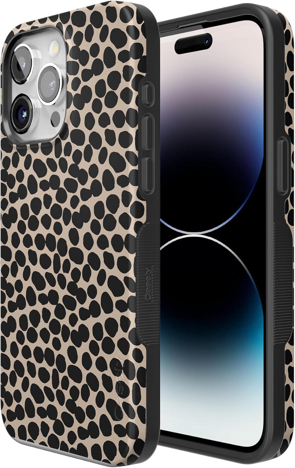Casely iPhone 15 Pro Max Case | Kiwi Kiss | Matcha Green Shimmer Glitter | Bold Protective Design | Compatible with MagSafe(Lost in Spots | Cheetah Print)