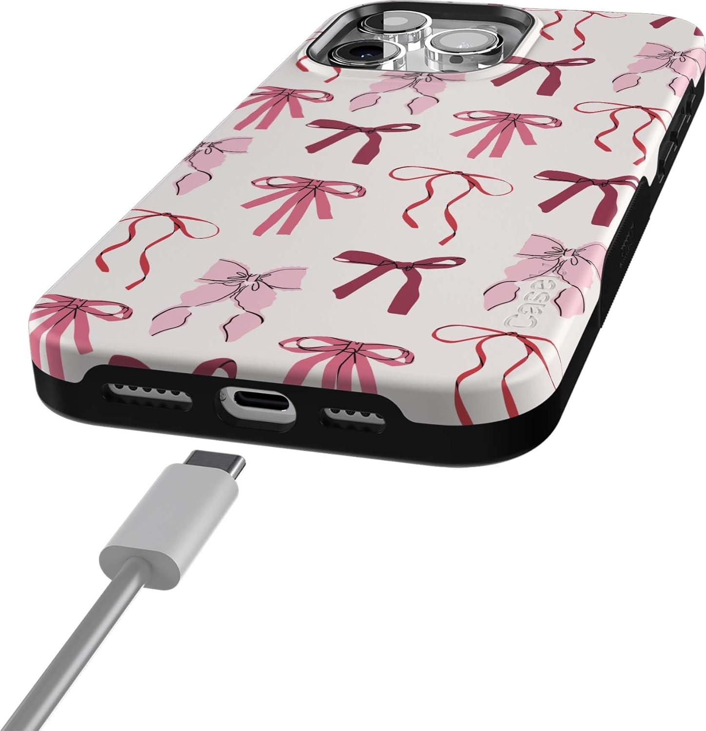 Casely iPhone 15 Pro Max Case | Kiwi Kiss | Matcha Green Shimmer Glitter | Bold Protective Design | Compatible with MagSafe(Lover Girlie | Pink Bows)