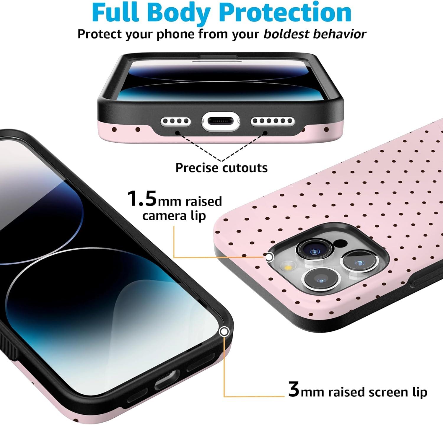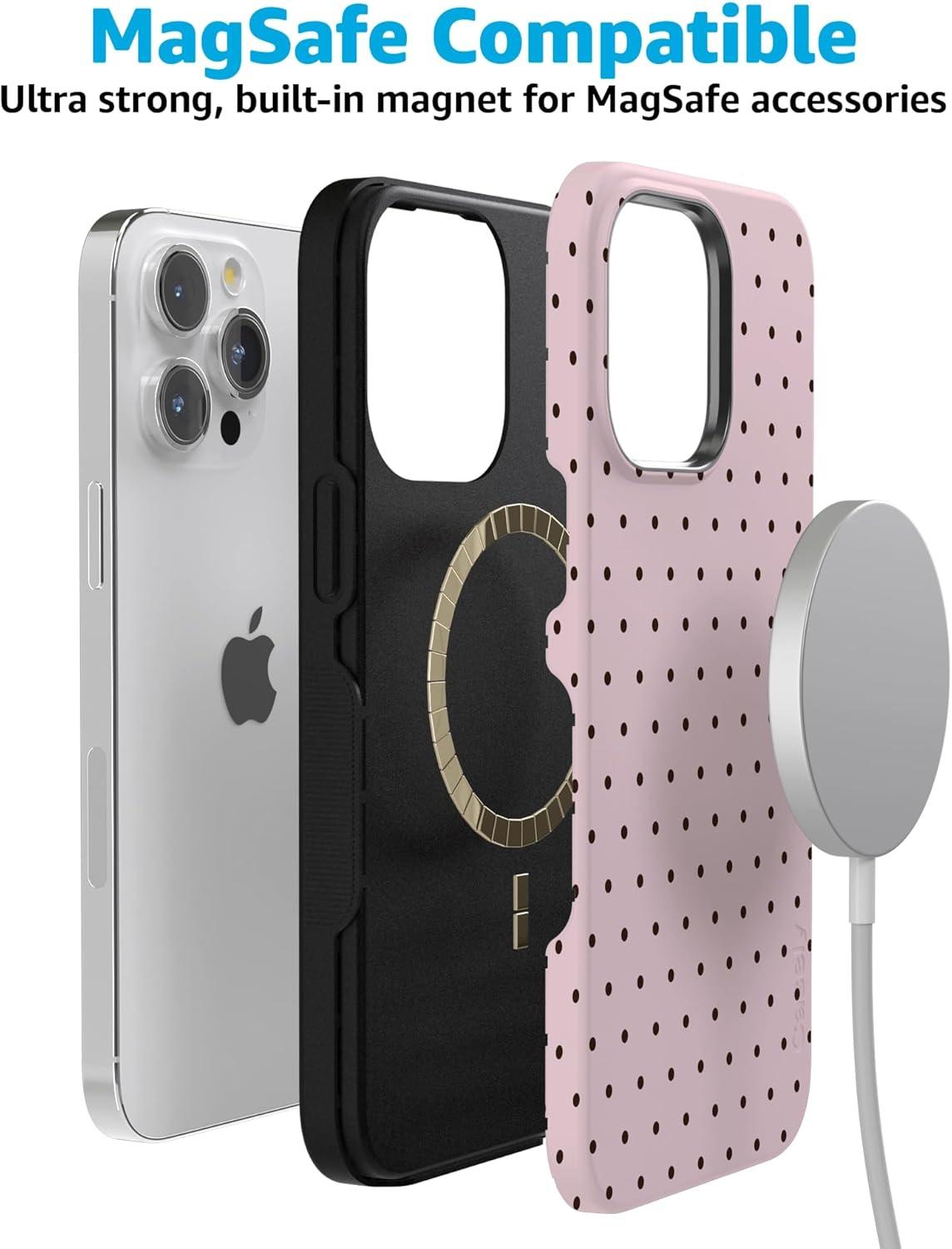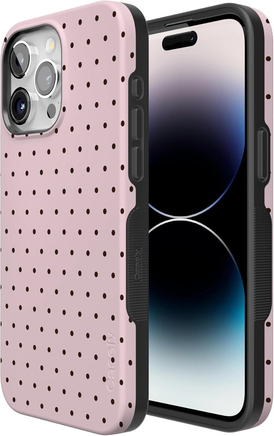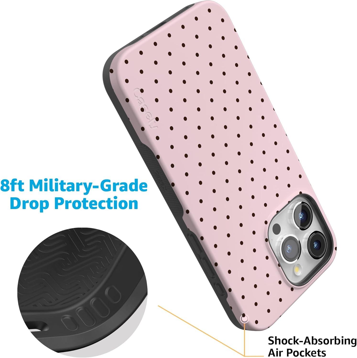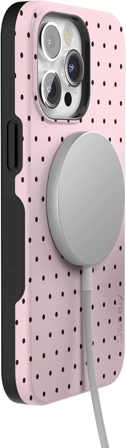 Casely iPhone 15 Pro Max Case | Kiwi Kiss | Matcha Green Shimmer Glitter | Bold Protective Design | Compatible with MagSafe(On the Dot | Pink Polka Dot)