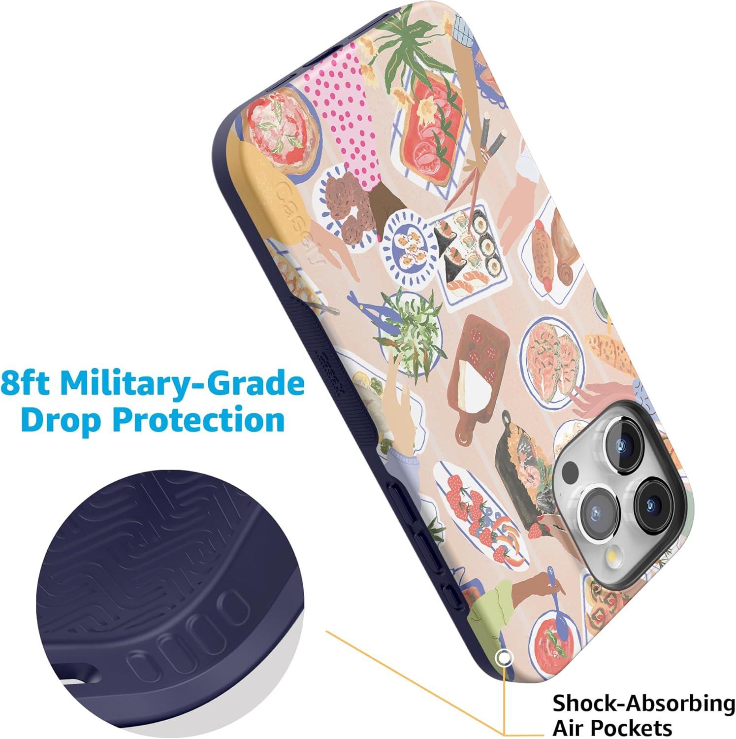 Casely iPhone 15 Pro Max Case | Kiwi Kiss | Matcha Green Shimmer Glitter | Bold Protective Design | Compatible with MagSafe(Picnic Party | Painted Collage)