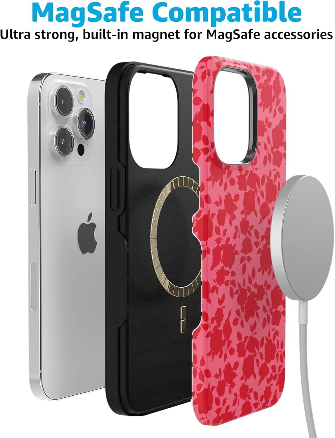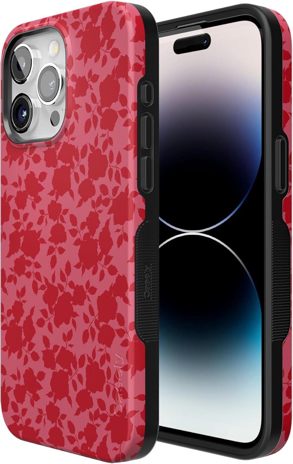 Casely iPhone 15 Pro Max Case | Kiwi Kiss | Matcha Green Shimmer Glitter | Bold Protective Design | Compatible with MagSafe(Rose Garden | Red Floral Aesthetic)