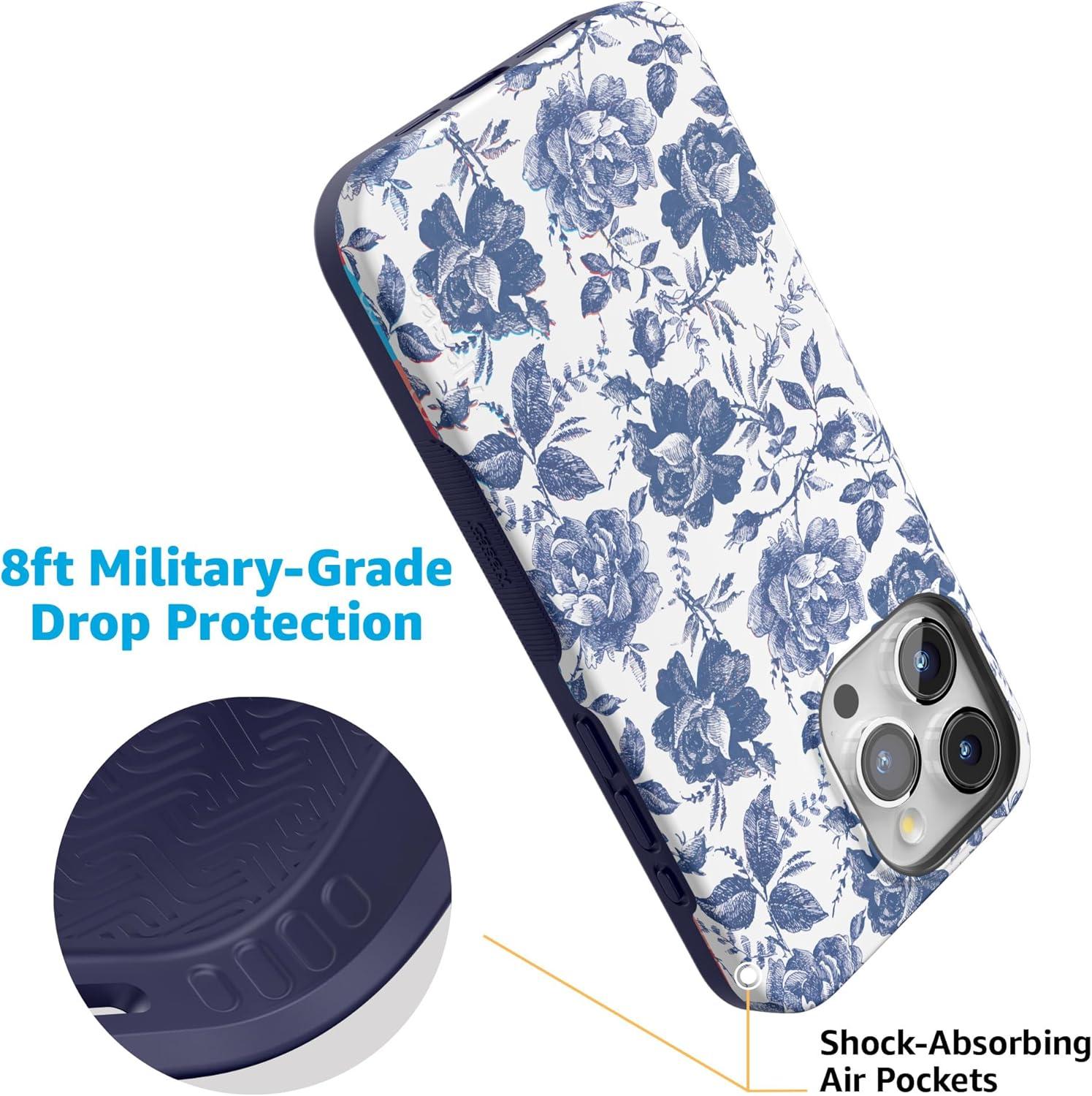 Casely iPhone 15 Pro Max Case | Kiwi Kiss | Matcha Green Shimmer Glitter | Bold Protective Design | Compatible with MagSafe(Rose to Fame | Blue & White Rose Floral)
