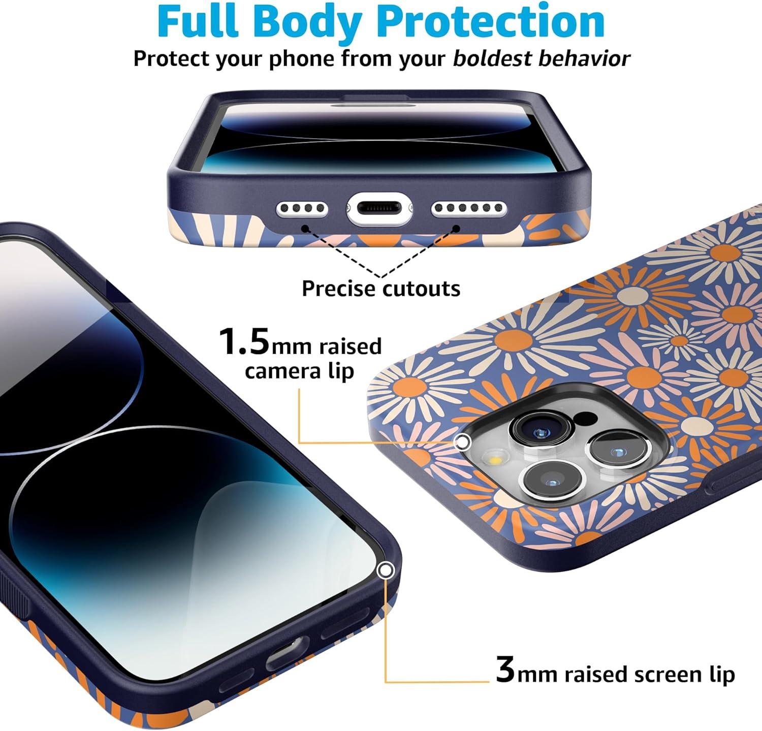 Casely iPhone 15 Pro Max Case | Kiwi Kiss | Matcha Green Shimmer Glitter | Bold Protective Design | Compatible with MagSafe(Spring Forward | Daisy Floral)