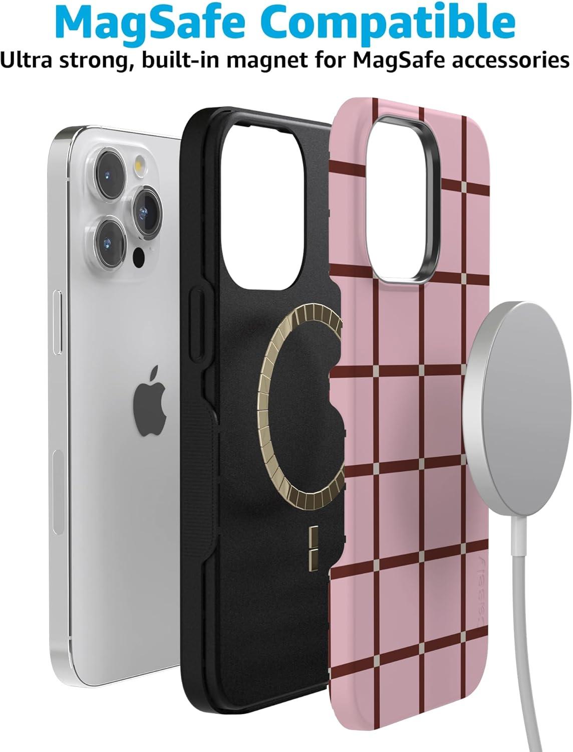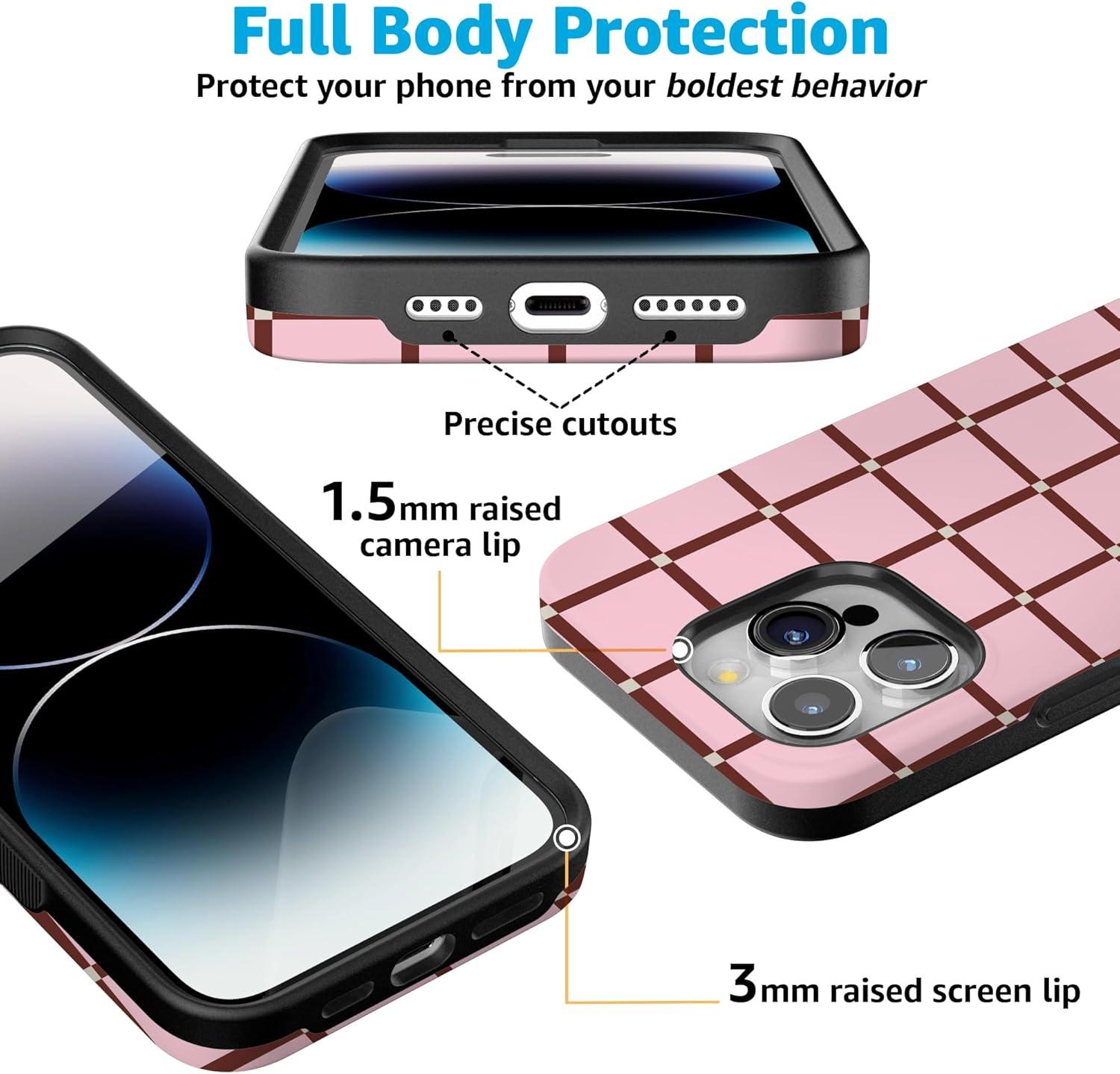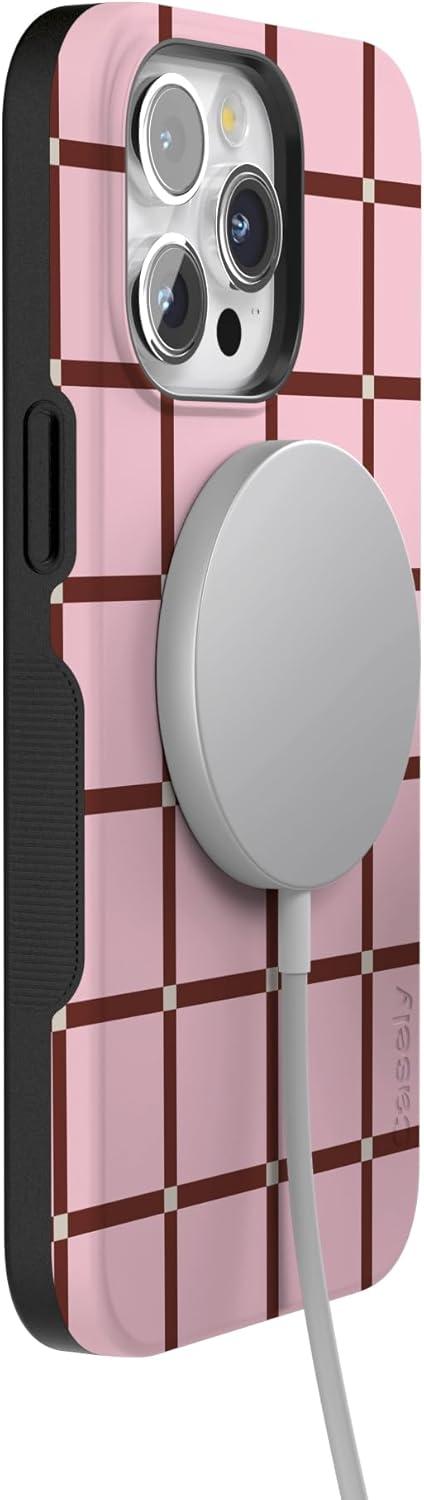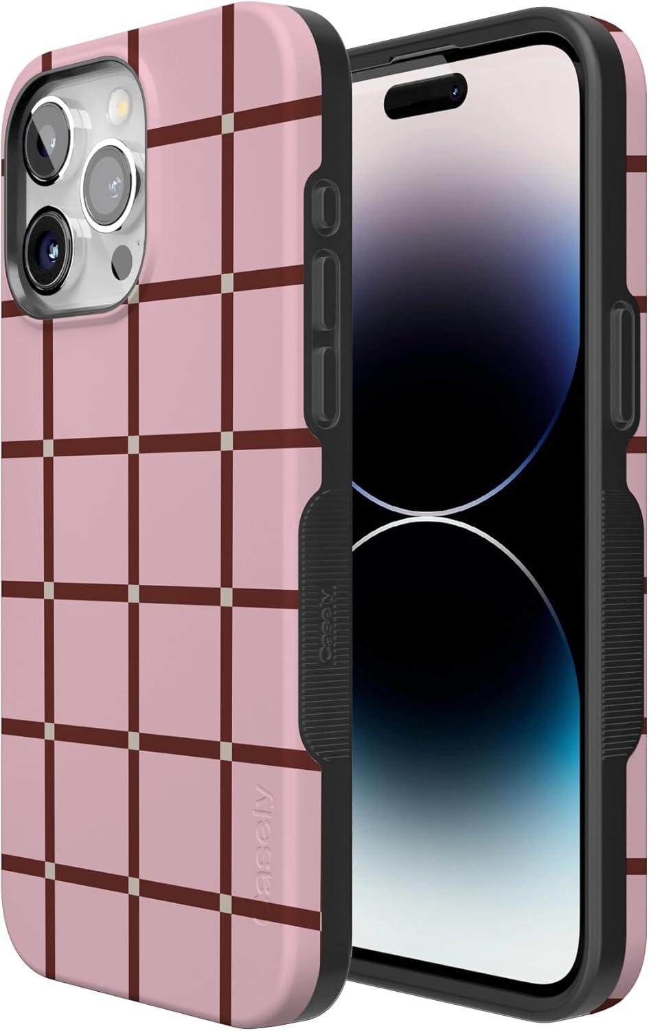 Casely iPhone 15 Pro Max Case | Kiwi Kiss | Matcha Green Shimmer Glitter | Bold Protective Design | Compatible with MagSafe(Uptown Gridlock | Pink Checkerboard)