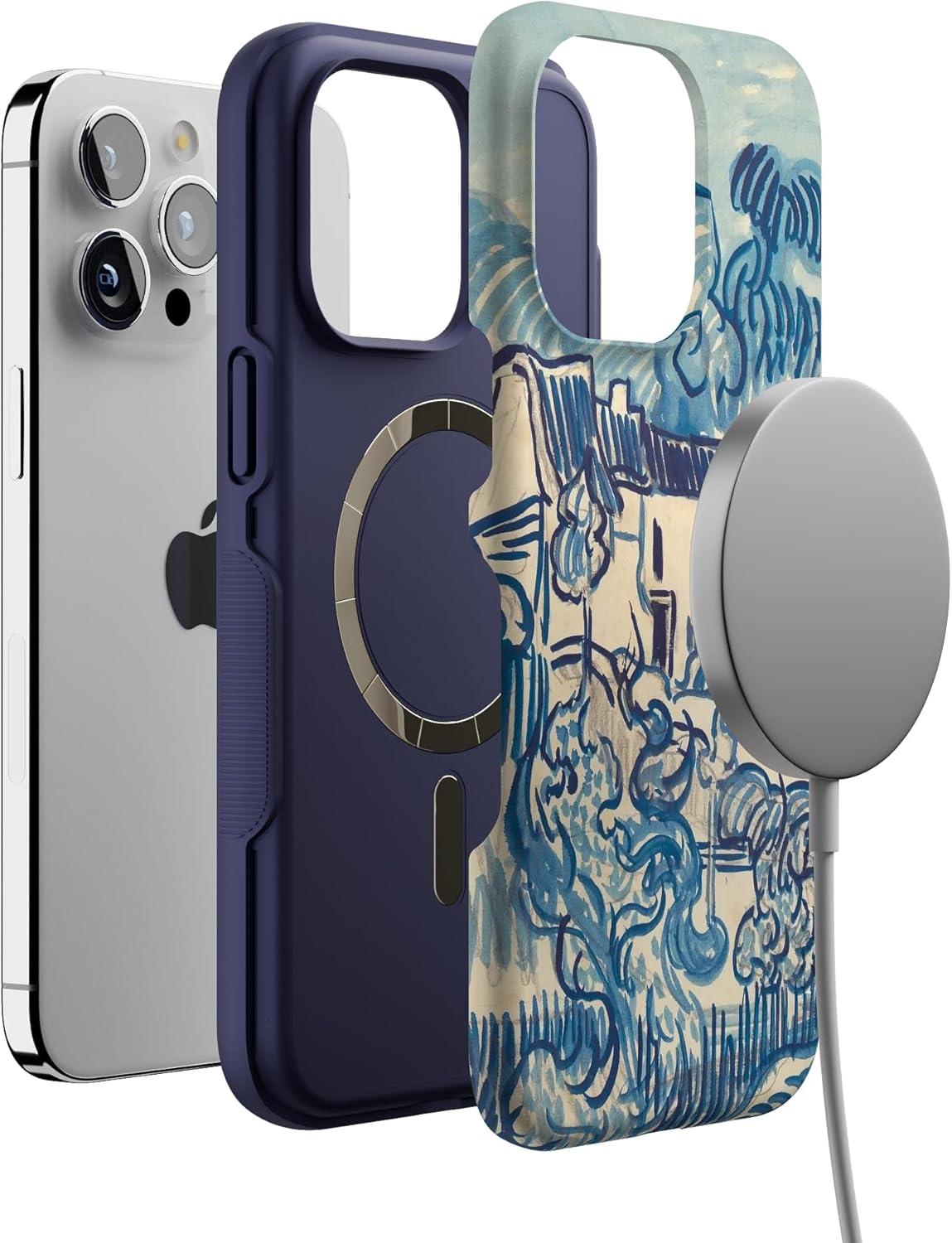 Casely iPhone 15 Pro Max Case | Kiwi Kiss | Matcha Green Shimmer Glitter | Bold Protective Design | Compatible with MagSafe(Van Gogh | Landscape With Houses)